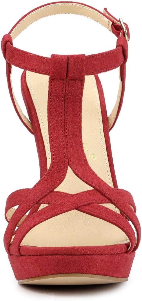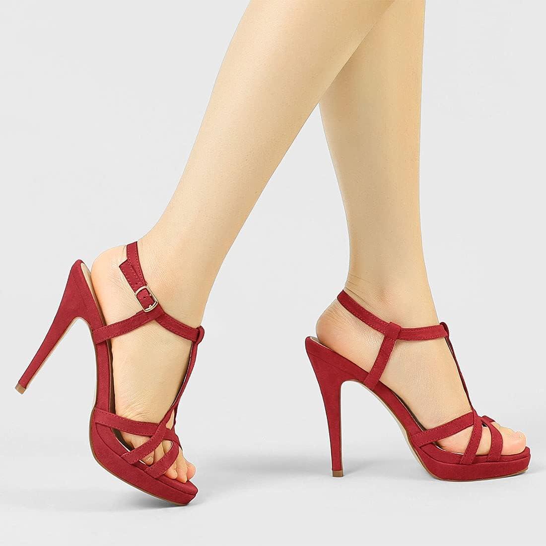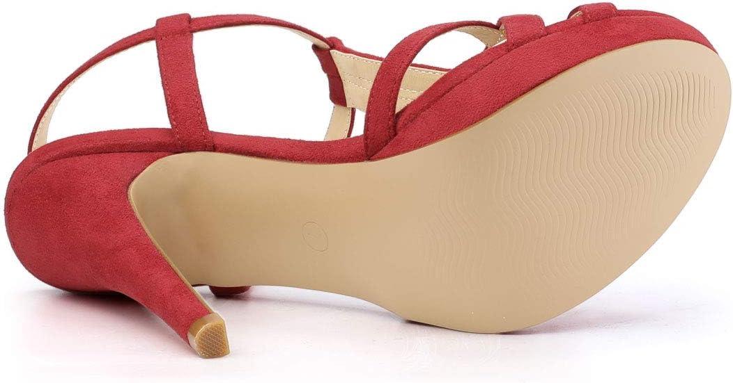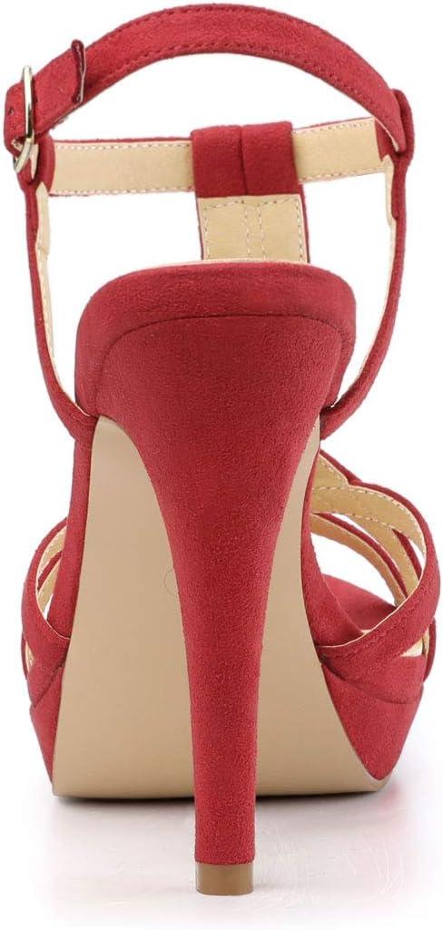 Allegra K Women’s T Strap Slingback Platform Stiletto Heel Sandals(Red)