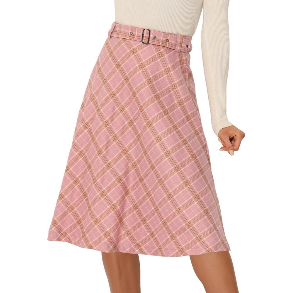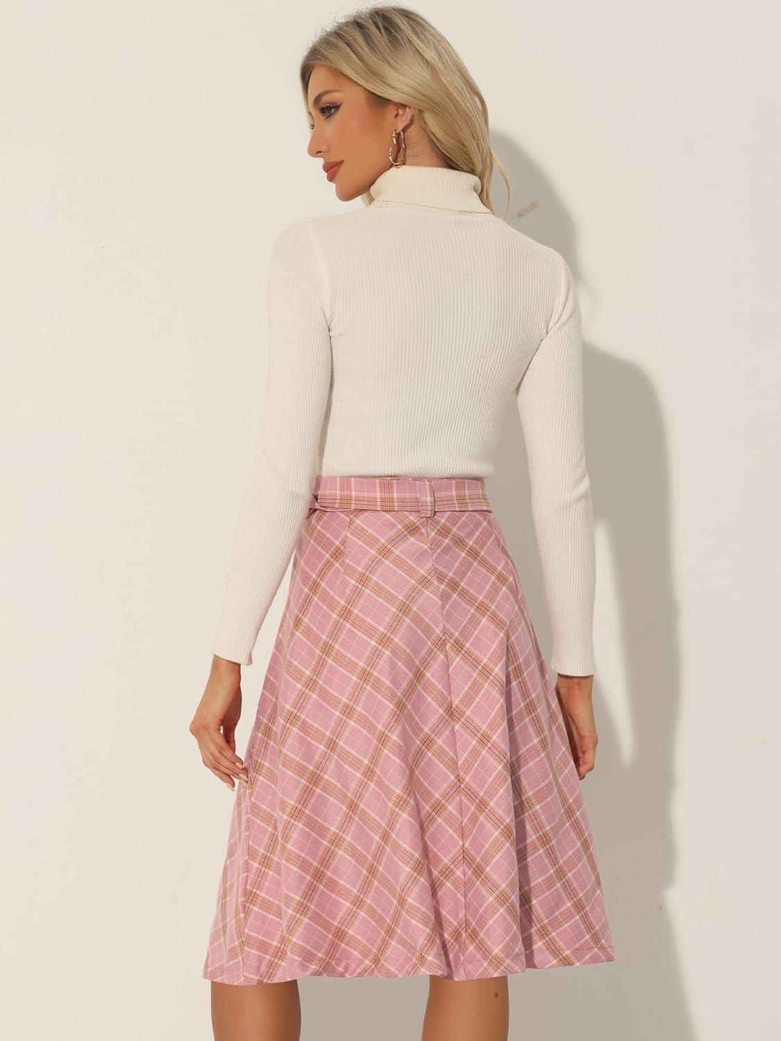 imageAllegra K Womens Tartan Plaid High Waist Belted Vintage ALine Midi SkirtLight Pink
