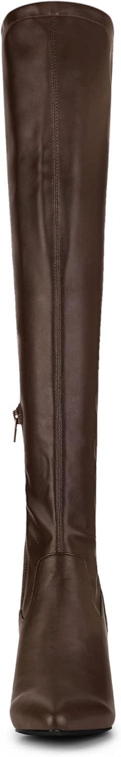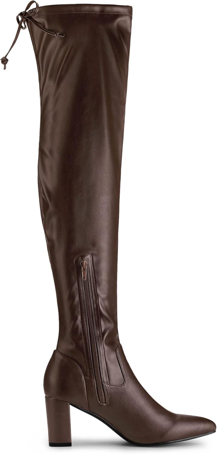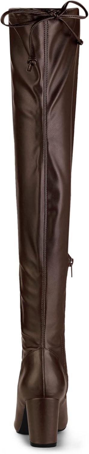 Allegra K Women’s Thigh High Block Heels Over Knee High Boots(Coffee)