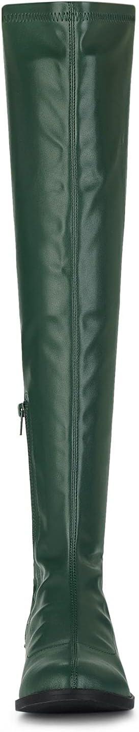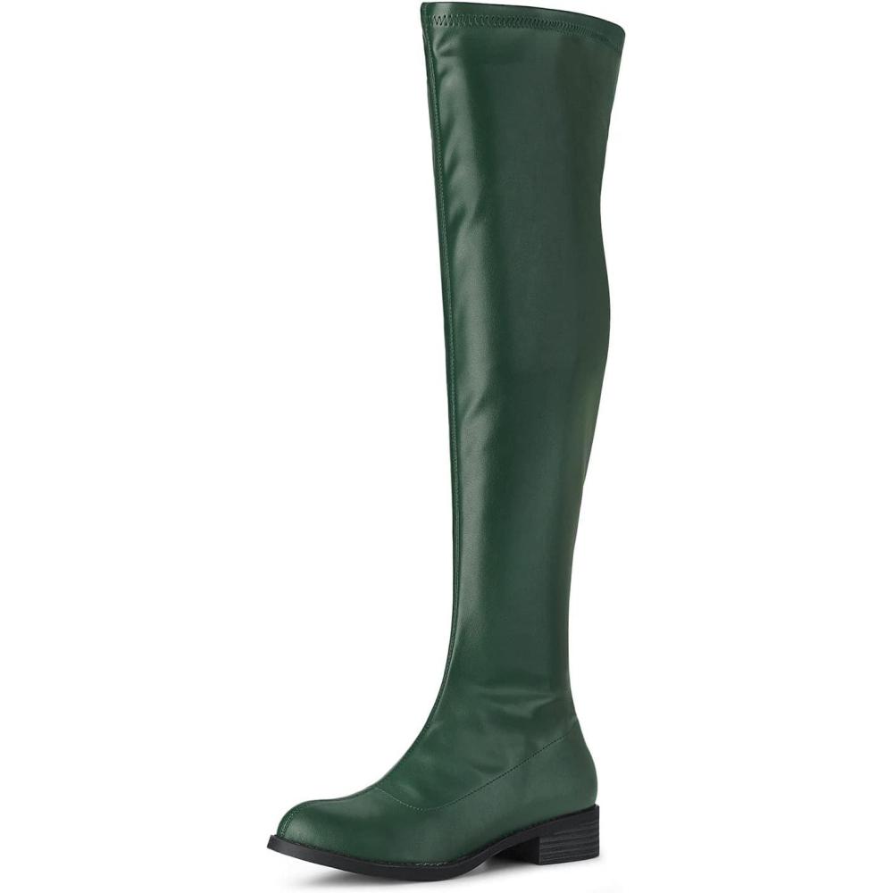 Allegra K Women’s Thigh High Boots Low Block Heel Fashion Over the Knee High Boots(Green)