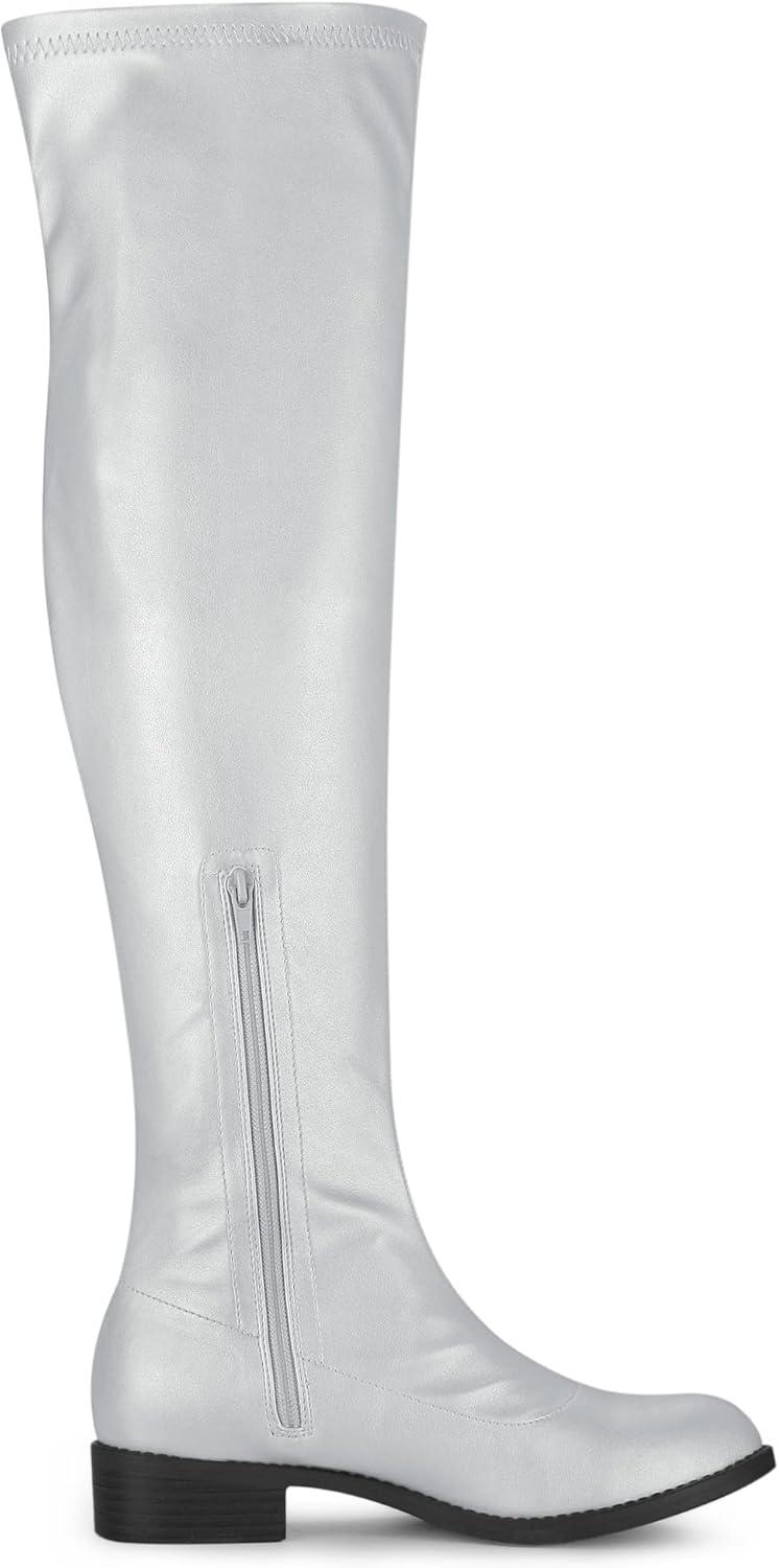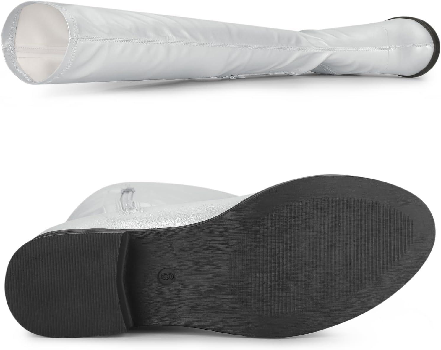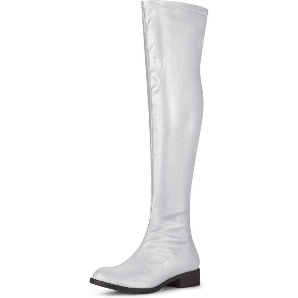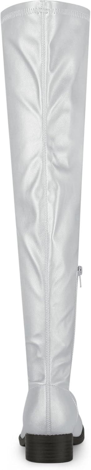 Allegra K Women’s Thigh High Boots Low Block Heel Fashion Over the Knee High Boots(Silver)