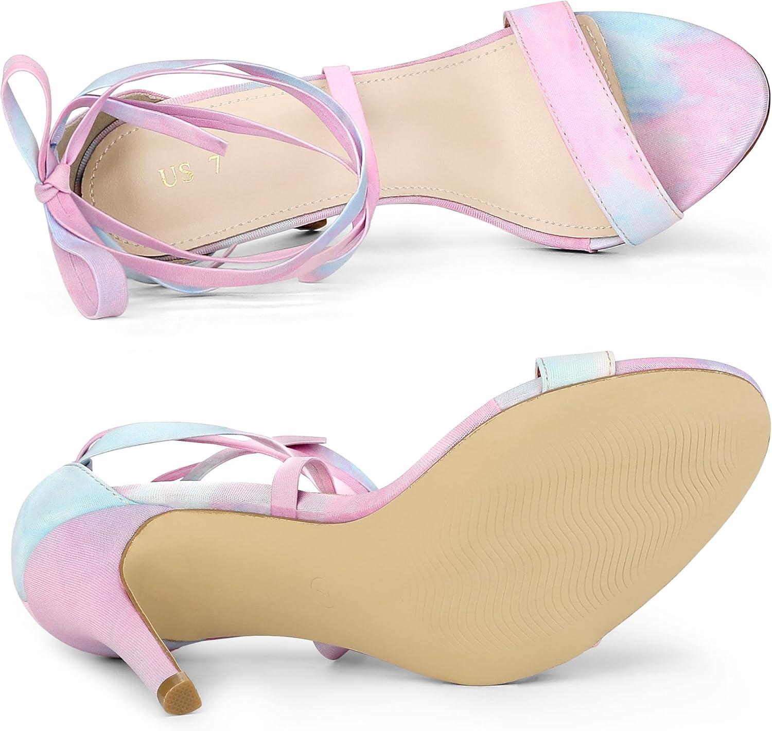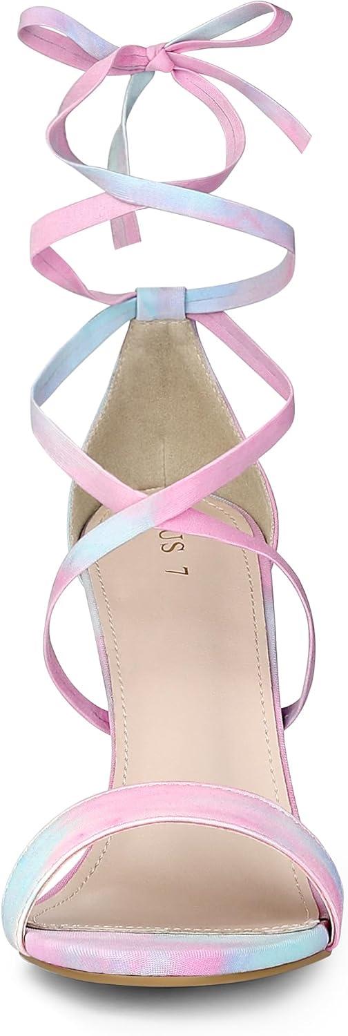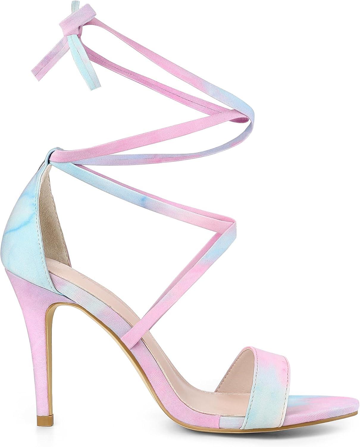 Allegra K Women’s Tie Dye Lace Up Stiletto Heel Sandals(Blue Pink)