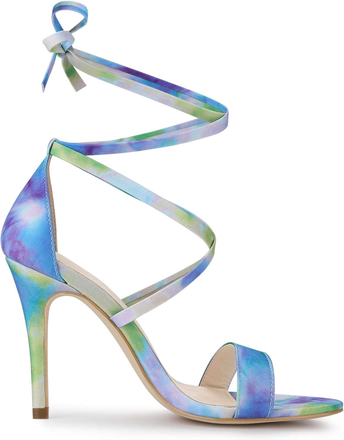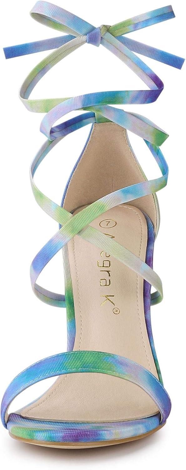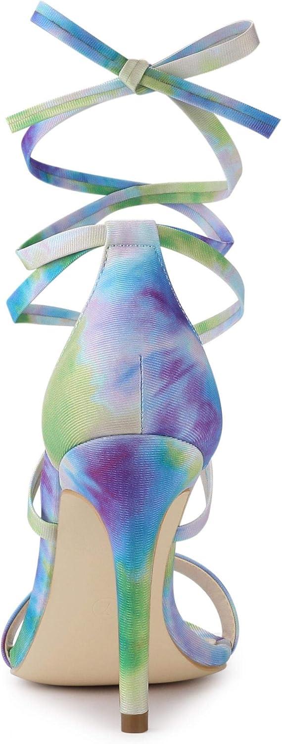 Allegra K Women’s Tie Dye Lace Up Stiletto Heel Sandals(Green Blue)