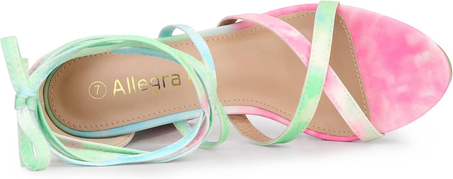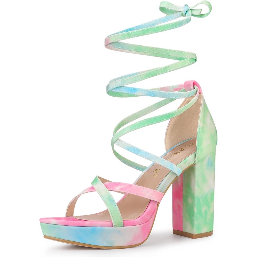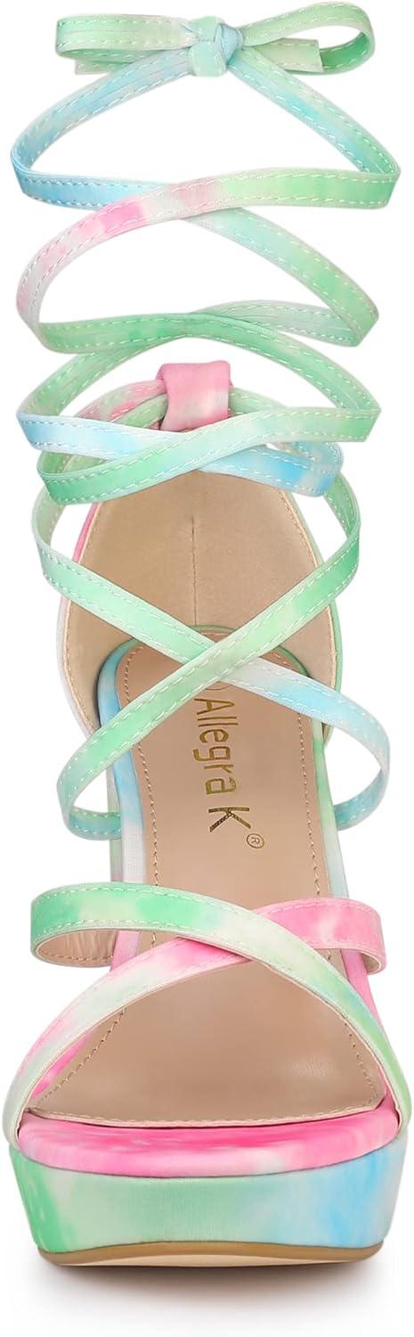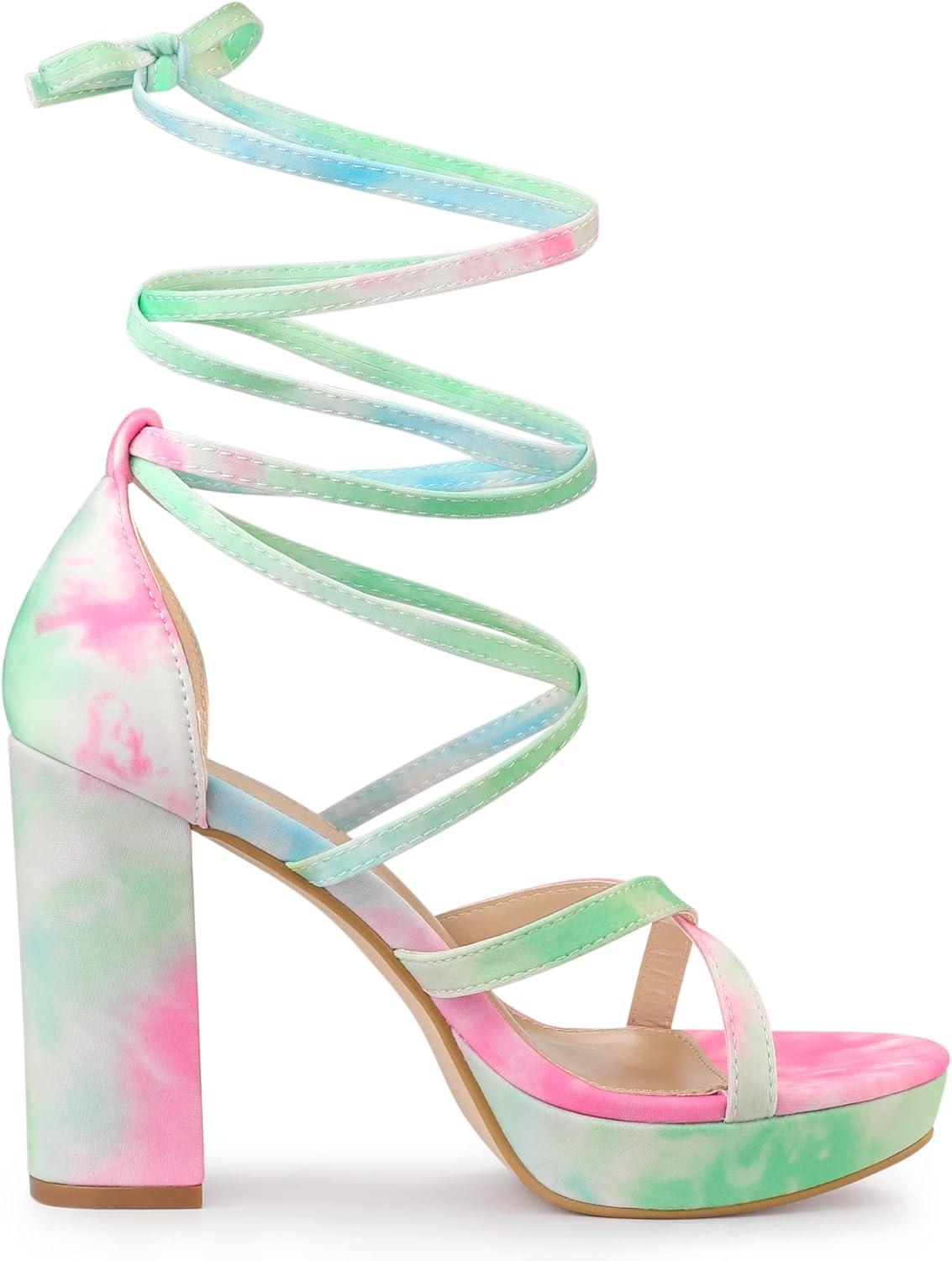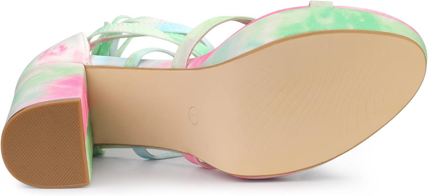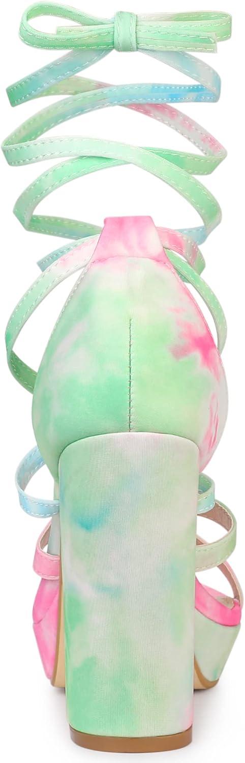 Allegra K Women’s Tie Dye Platform Chunky Heel Lace Up Sandals(Green)