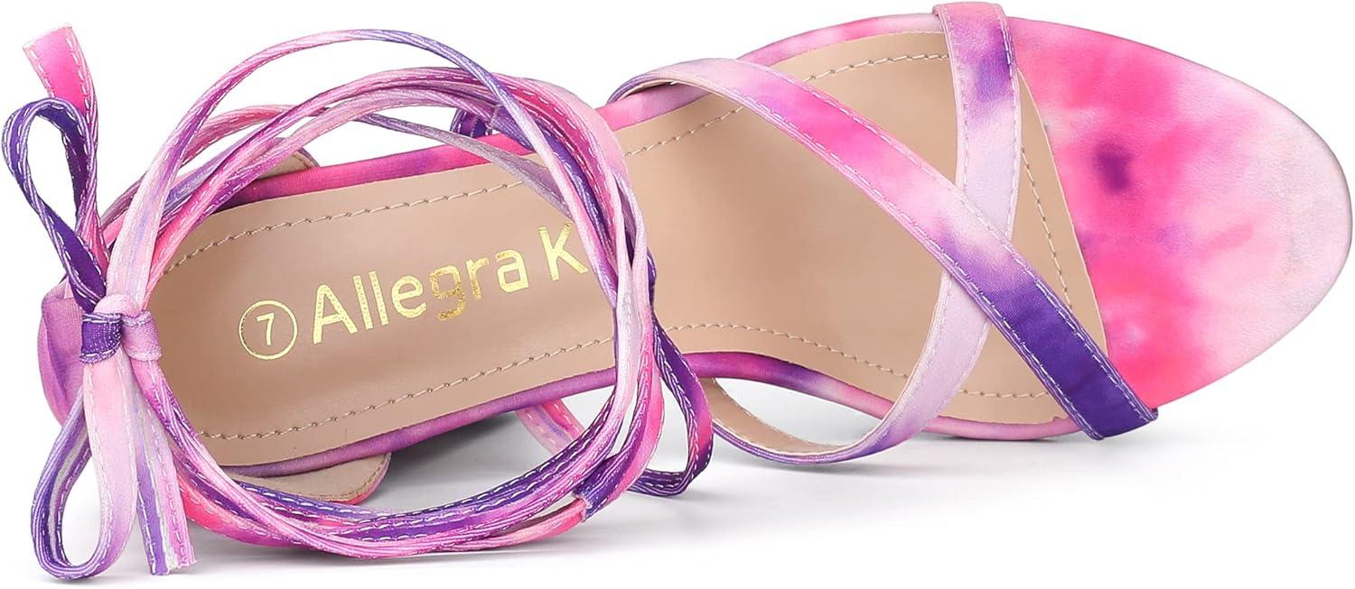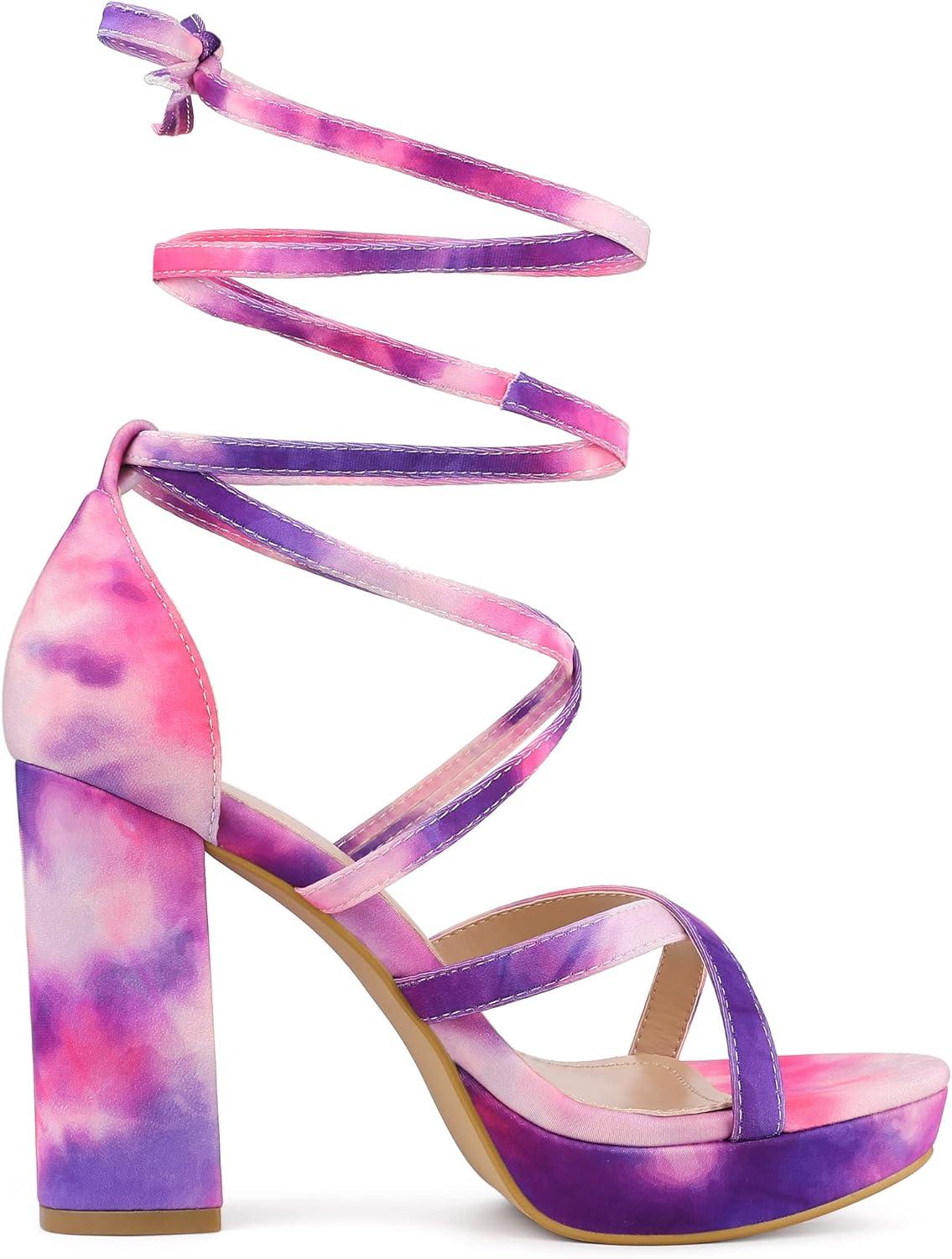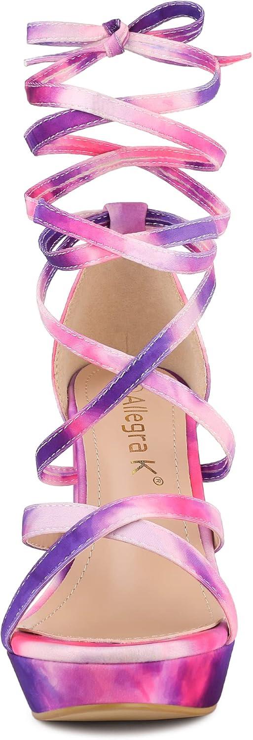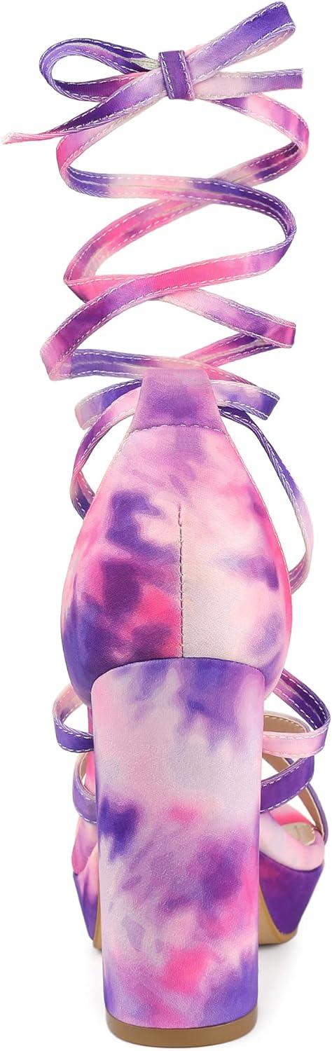 Allegra K Women’s Tie Dye Platform Chunky Heel Lace Up Sandals(Purple)