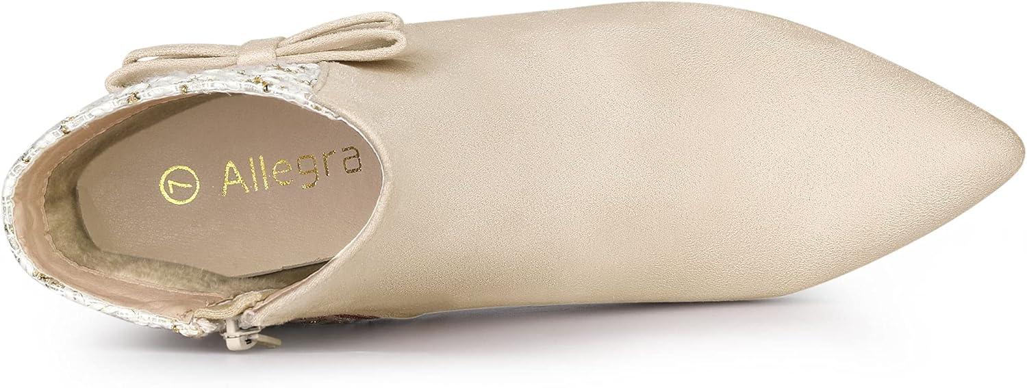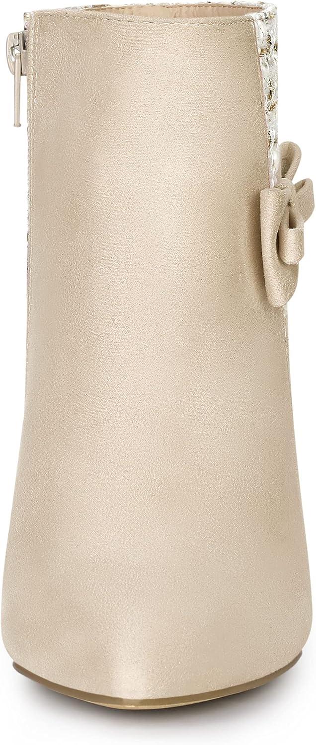 Allegra K Women’s Tweed Plaid Heels Boot Bow Block Heels Ankle Boots(Beige)