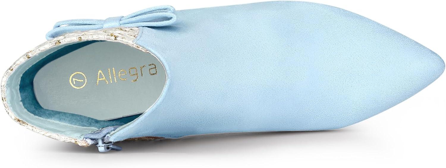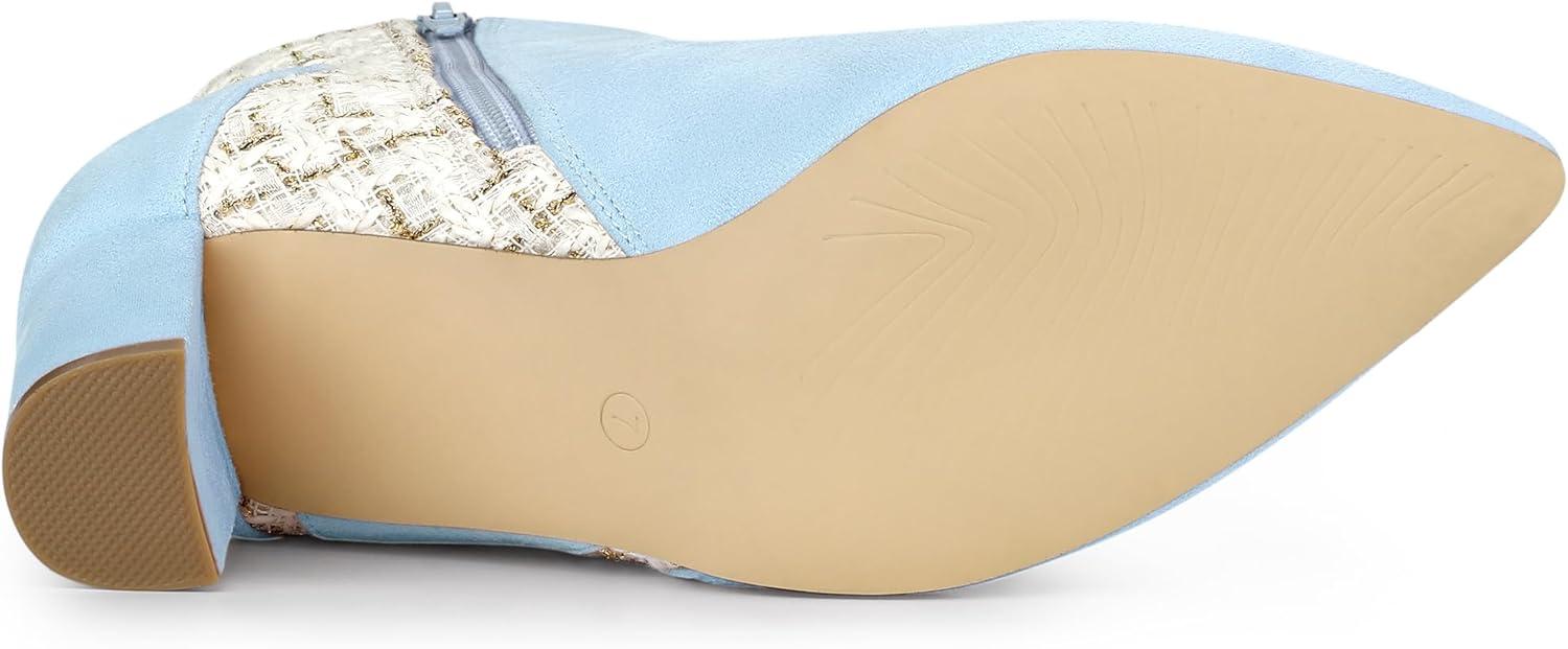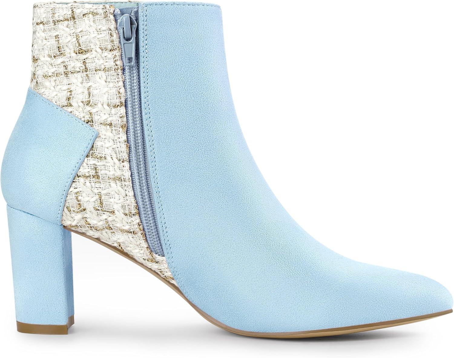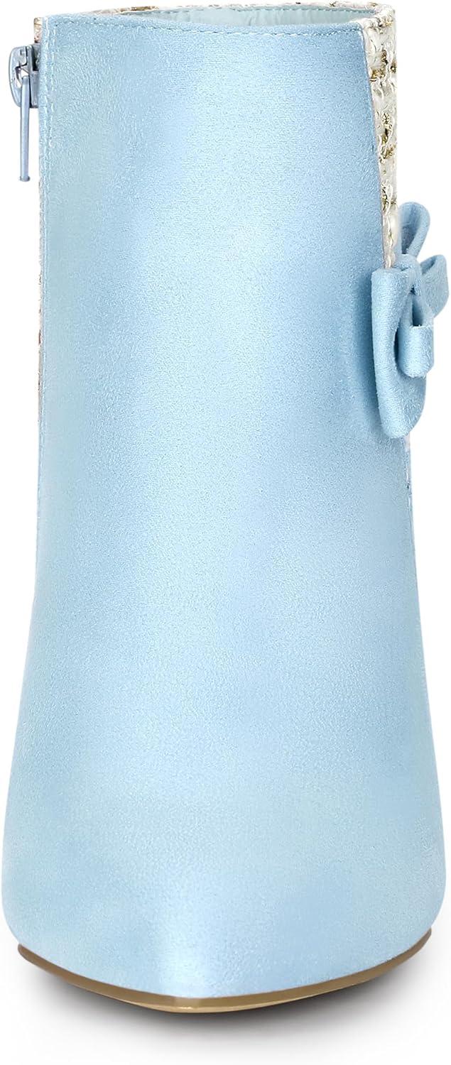 Allegra K Women’s Tweed Plaid Heels Boot Bow Block Heels Ankle Boots(Sky Blue)