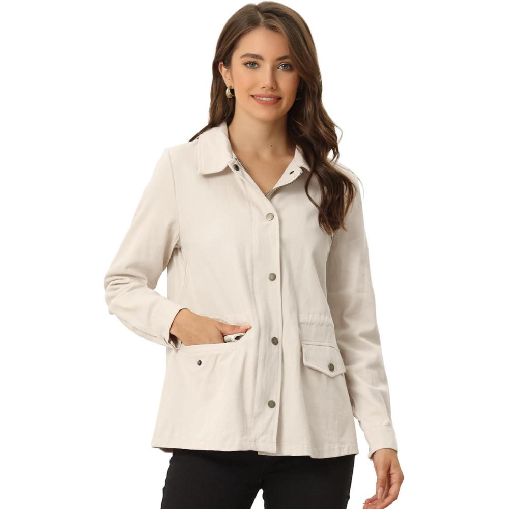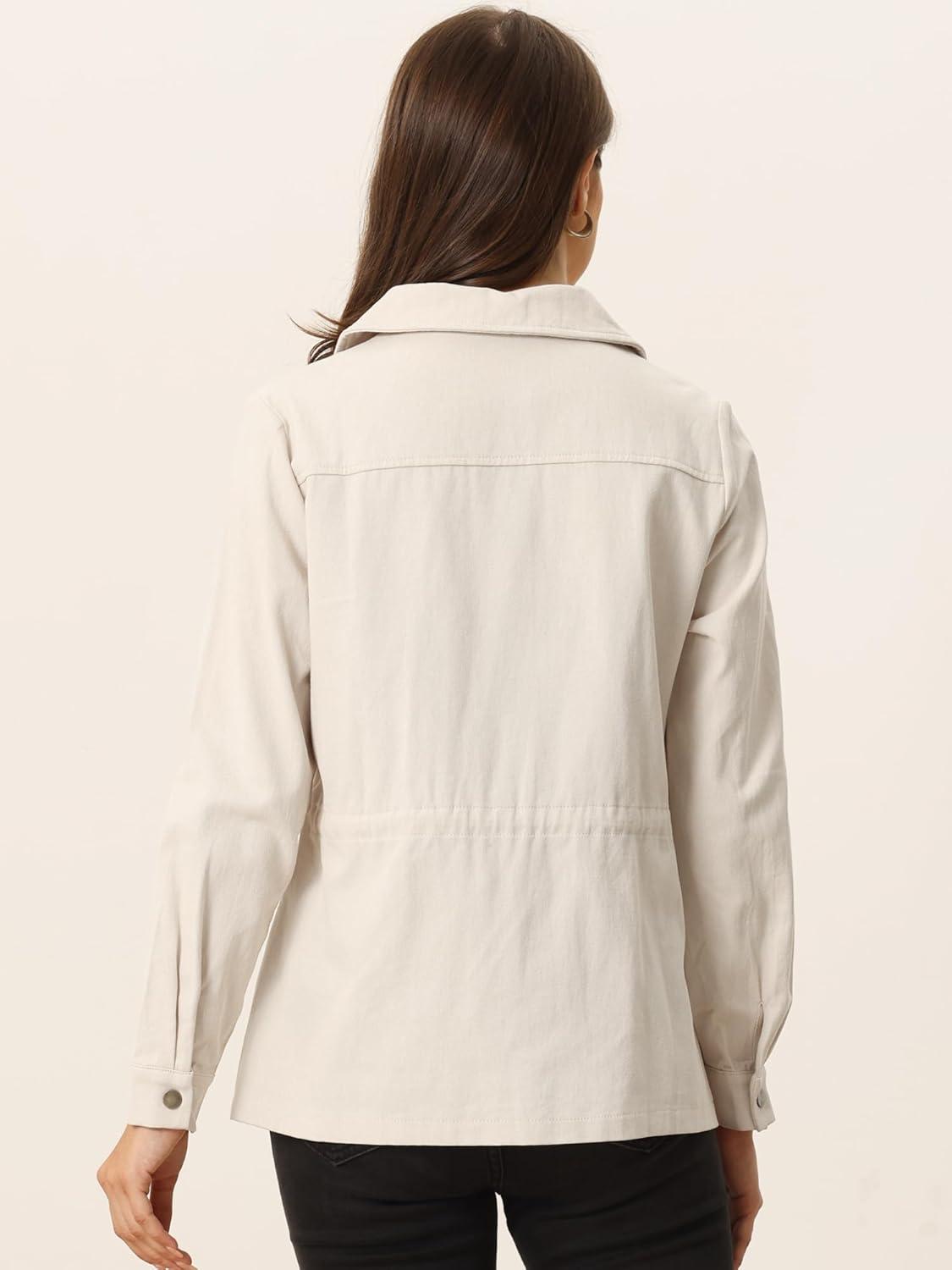 Allegra K Women's Utility Jacket Zip Up Drawstring Waist Snap Buttons Lightweight Anorak Jackets with Pockets(Apricot)