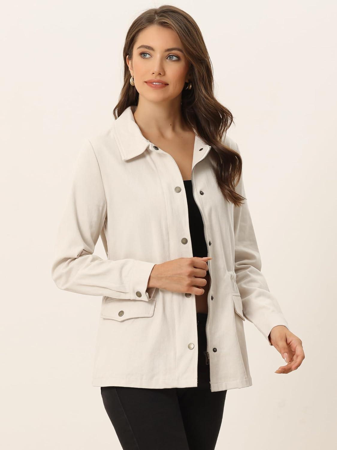 imageAllegra K Womens Utility Jacket Zip Up Drawstring Waist Snap Buttons Lightweight Anorak Jackets with PocketsApricot