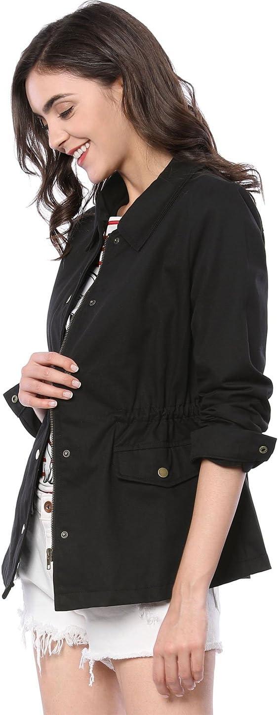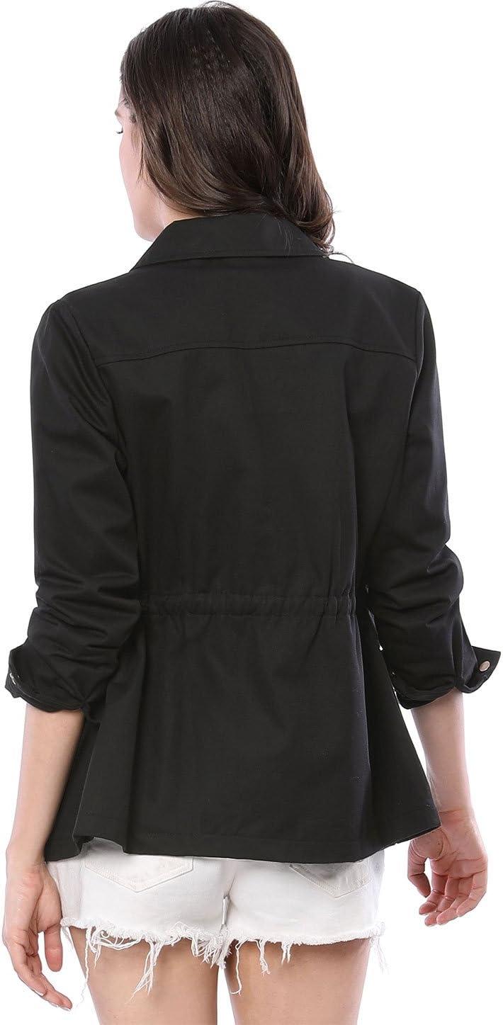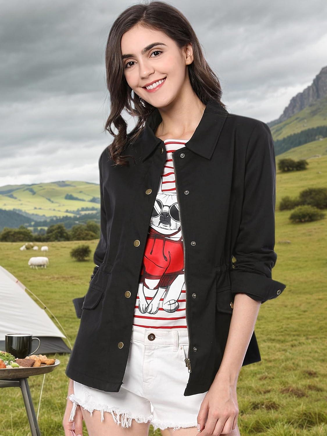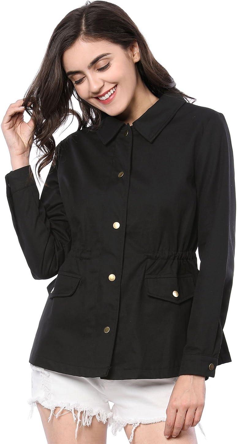 Allegra K Women’s Utility Jacket Zip Up Drawstring Waist Snap Buttons Lightweight Anorak Jackets with Pockets(Black)