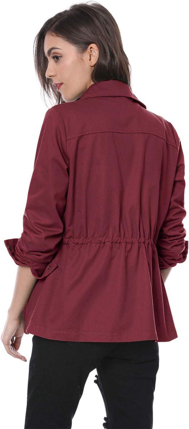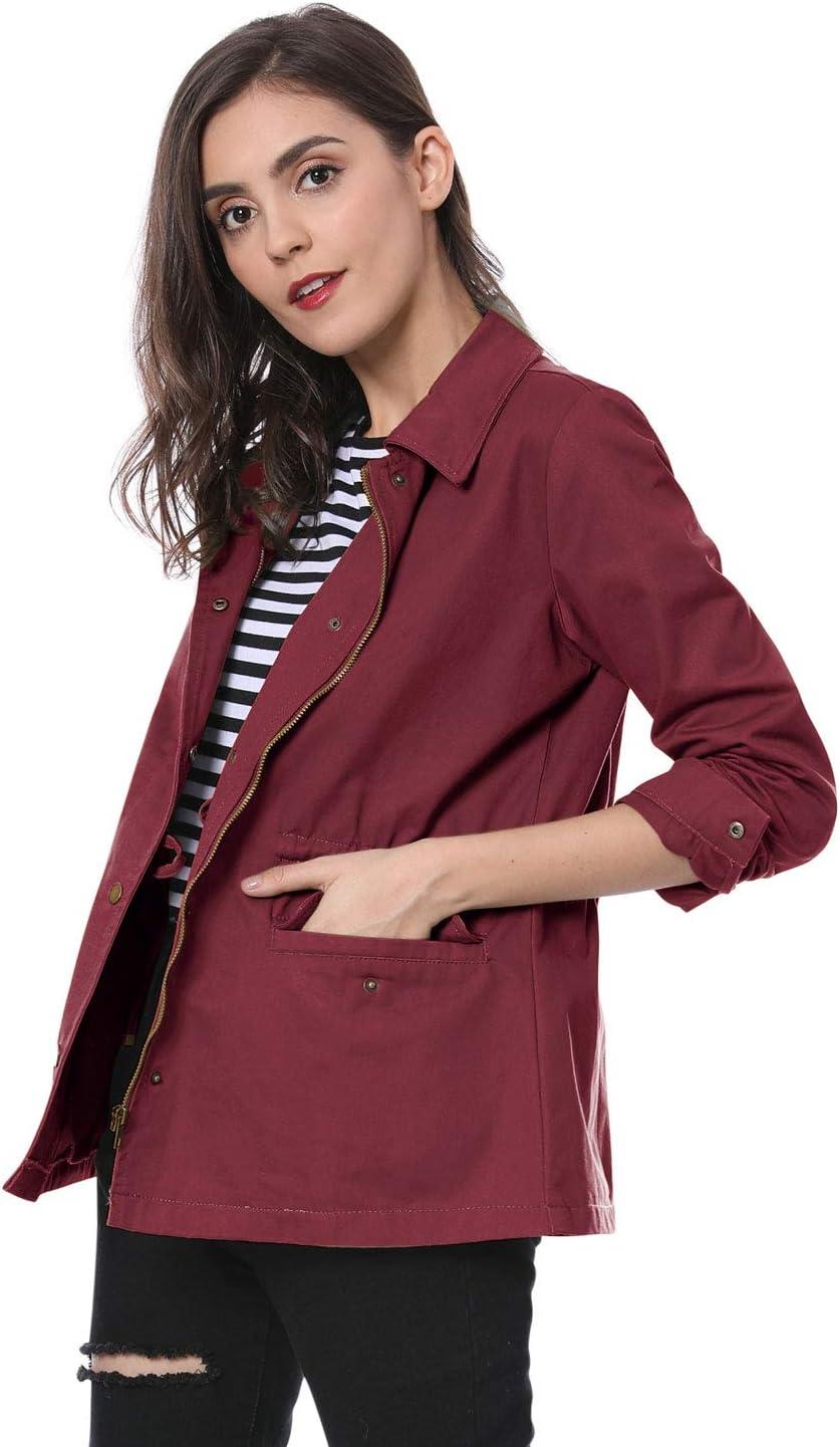 Allegra K Women’s Utility Jacket Zip Up Drawstring Waist Snap Buttons Lightweight Anorak Jackets with Pockets(Burgundy)