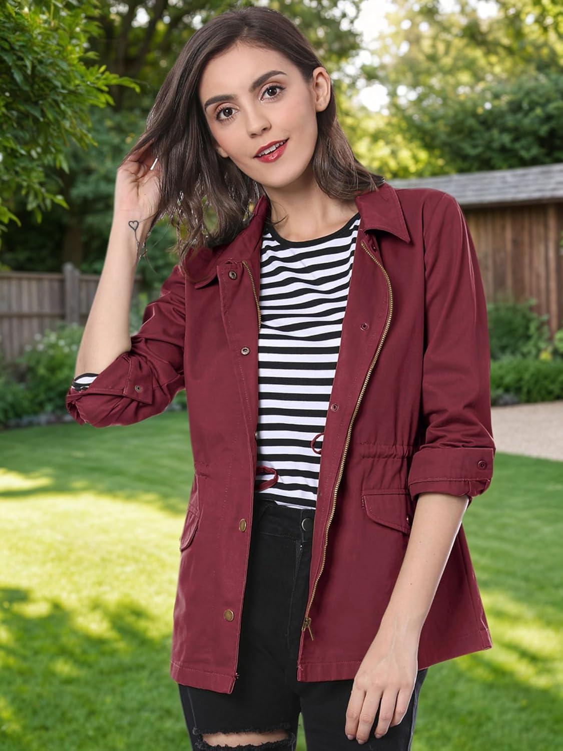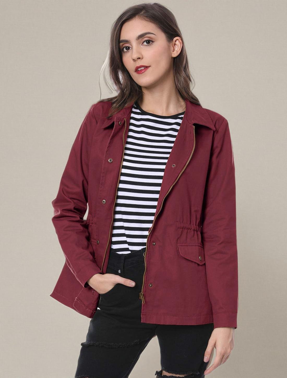Don’t break the bank! Get the Allegra K Women’s Utility Jacket Zip Up Drawstring Waist Snap Buttons Lightweight Anorak Jackets with Pockets(Burgundy) you want at a price you can afford during our markdown sale.