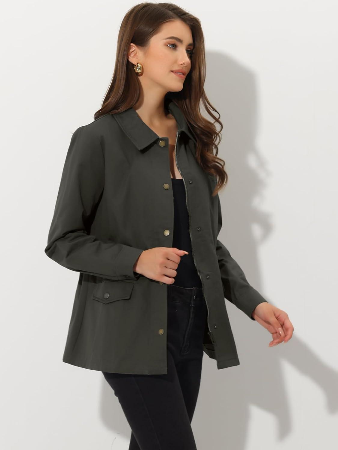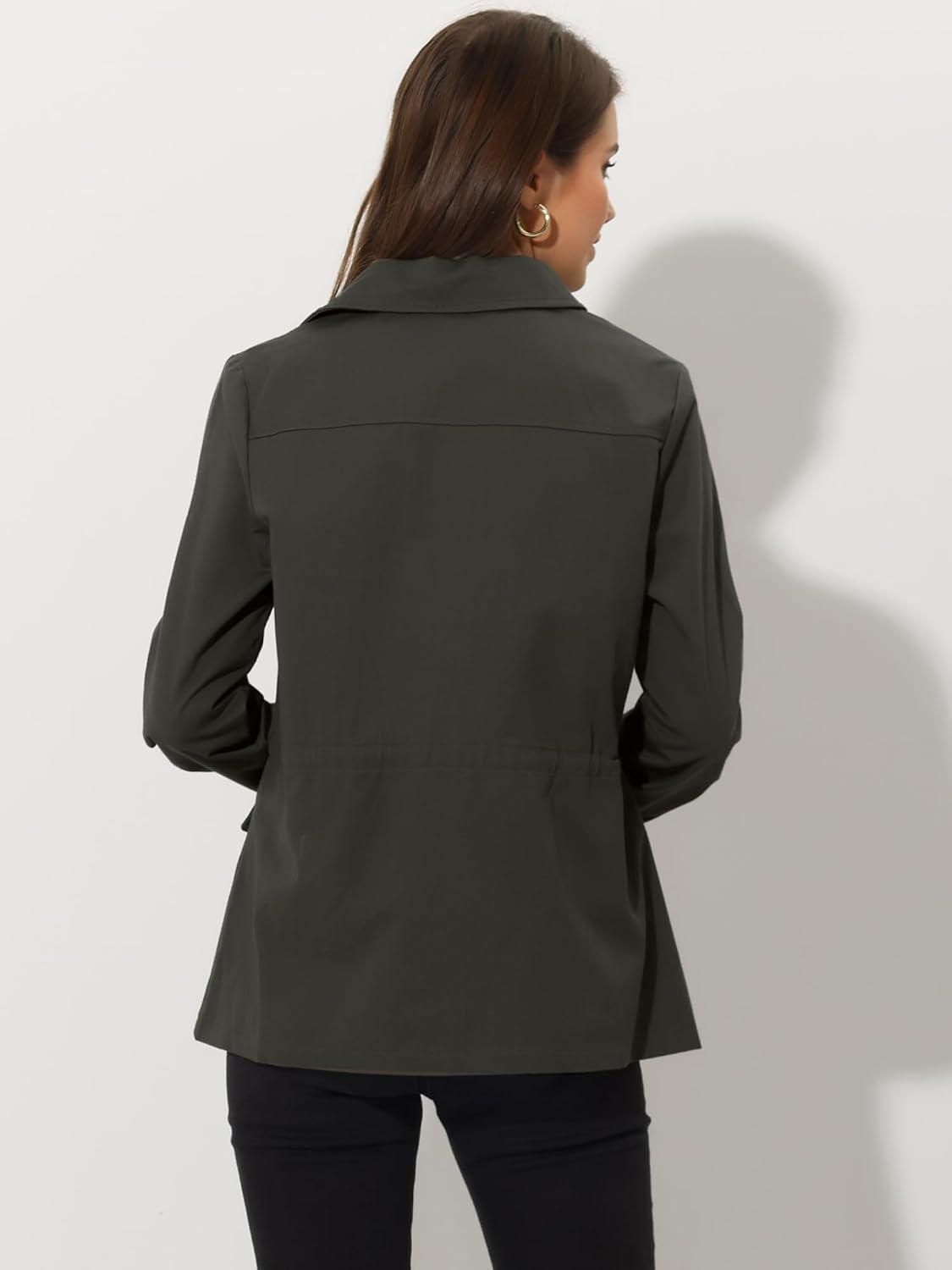Allegra K Women's Utility Jacket Zip Up Drawstring Waist Snap Buttons Lightweight Anorak Jackets with Pockets(Dark Grey)