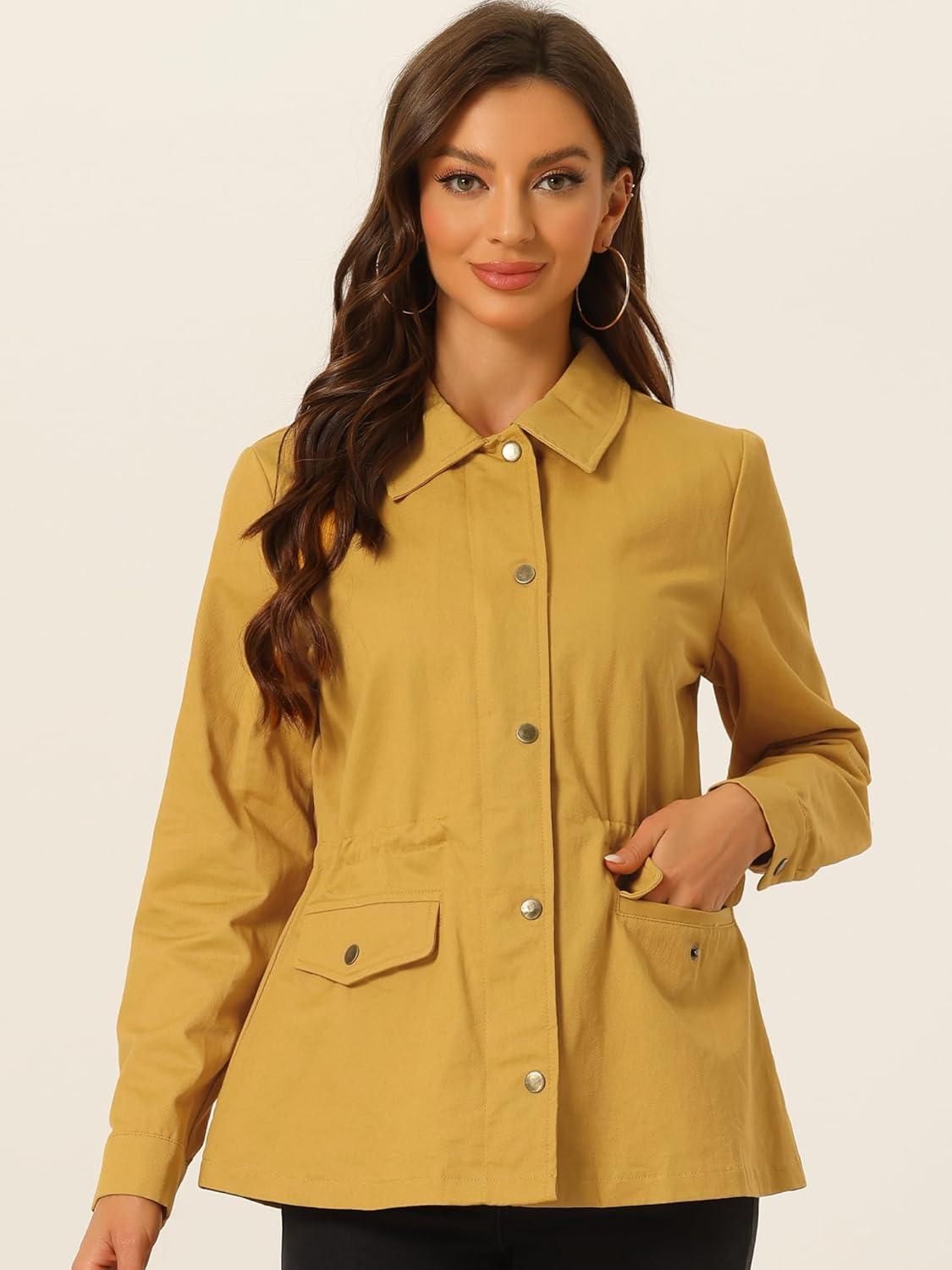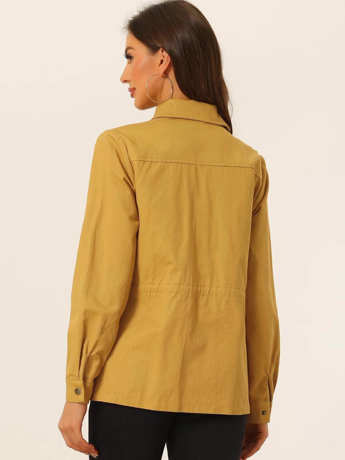 imageAllegra K Womens Utility Jacket Zip Up Drawstring Waist Snap Buttons Lightweight Anorak Jackets with PocketsGinger