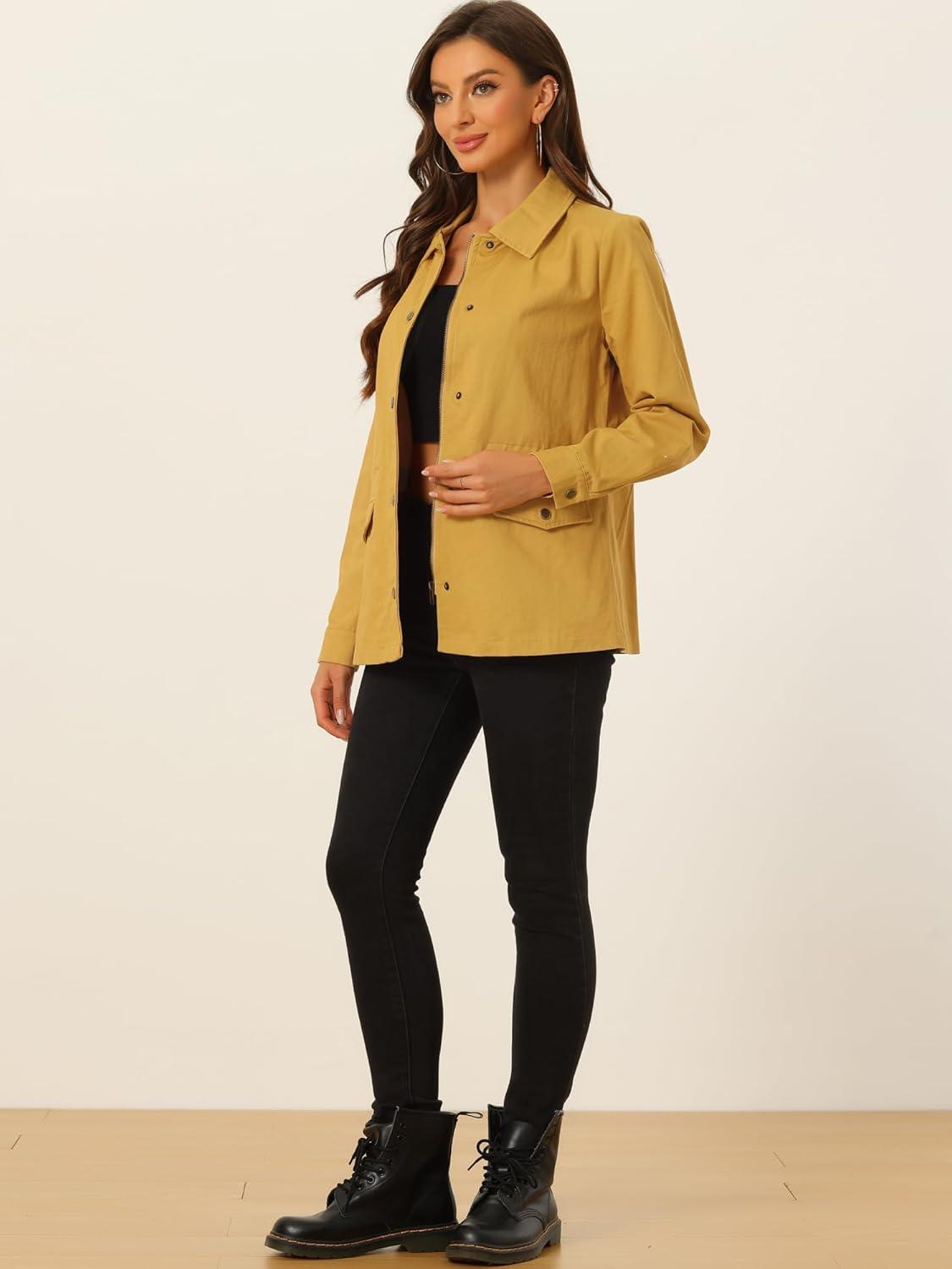 Allegra K Women's Utility Jacket Zip Up Drawstring Waist Snap Buttons Lightweight Anorak Jackets with Pockets(Ginger)