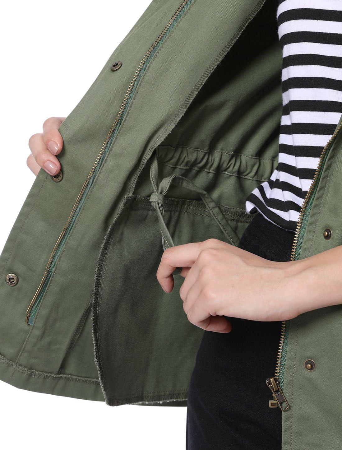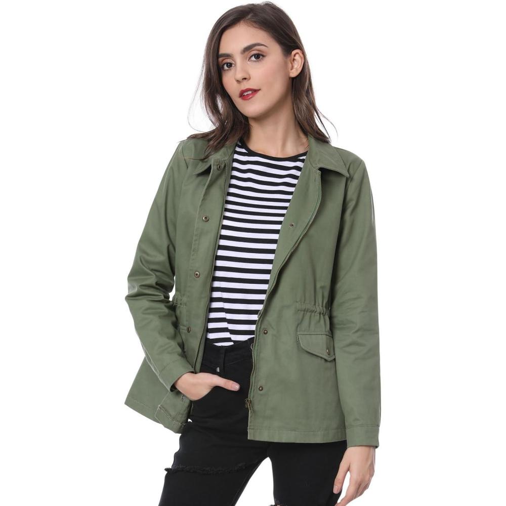 Allegra K Women's Utility Jacket Zip Up Drawstring Waist Snap Buttons Lightweight Anorak Jackets with Pockets(Green)