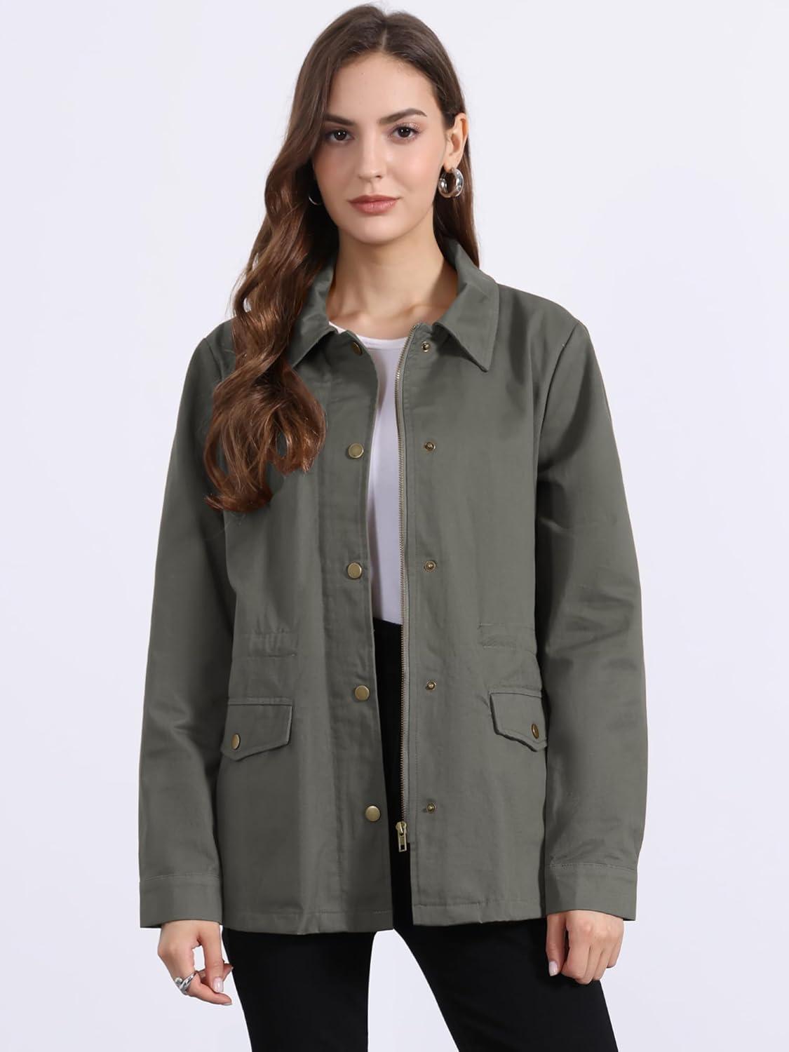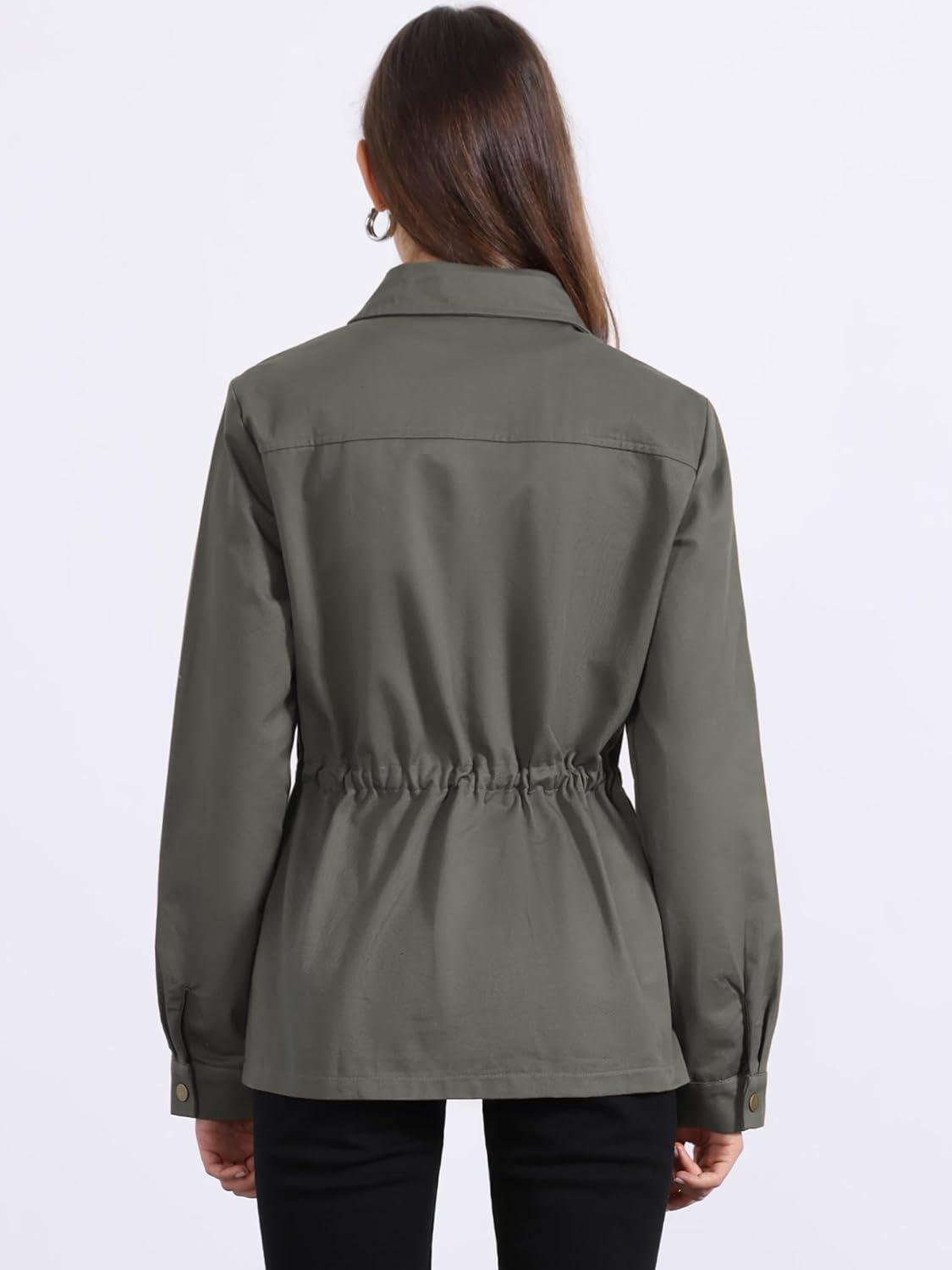 imageAllegra K Womens Utility Jacket Zip Up Drawstring Waist Snap Buttons Lightweight Anorak Jackets with PocketsGreen