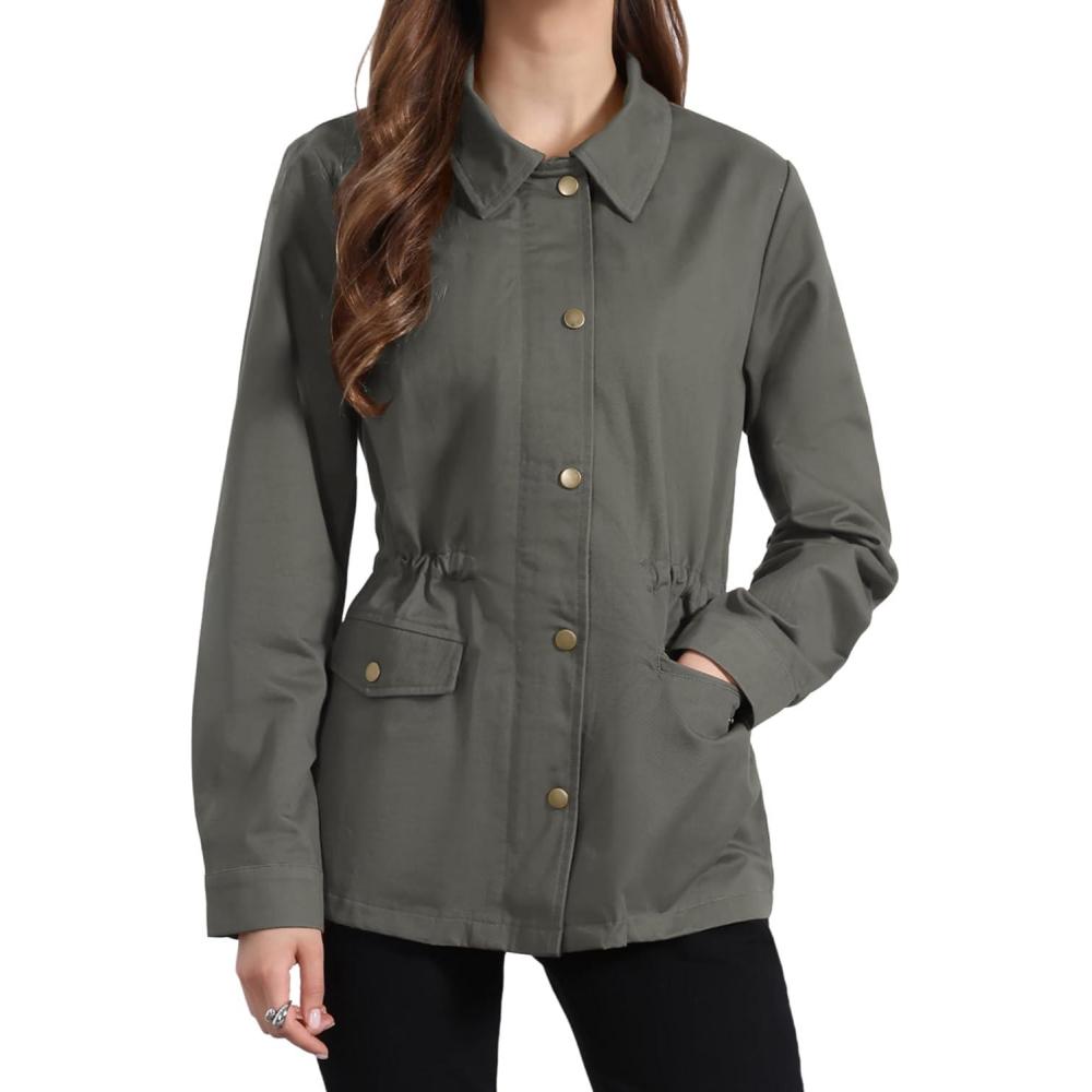 Allegra K Women's Utility Jacket Zip Up Drawstring Waist Snap Buttons Lightweight Anorak Jackets with Pockets(Grey)