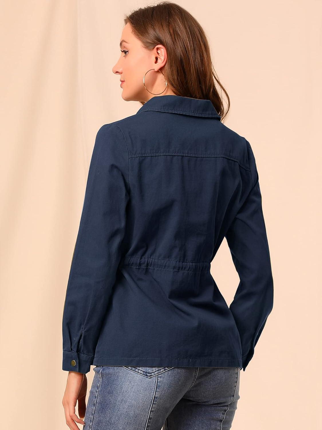 imageAllegra K Womens Utility Jacket Zip Up Drawstring Waist Snap Buttons Lightweight Anorak Jackets with PocketsNavy Blue