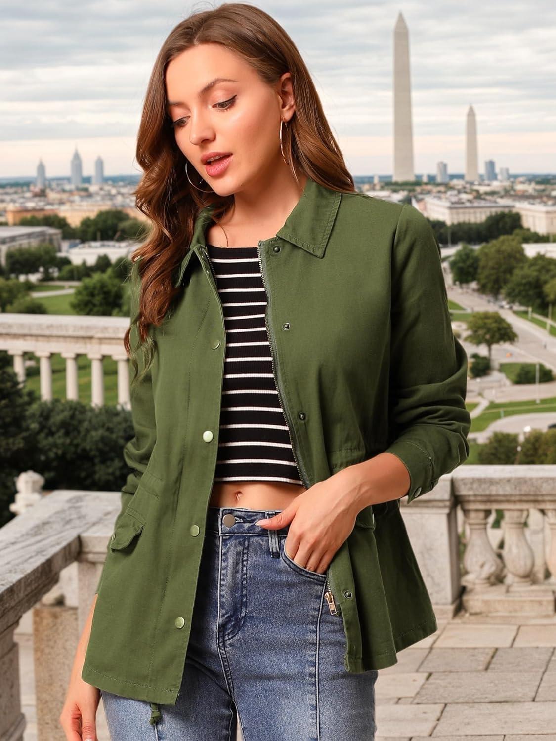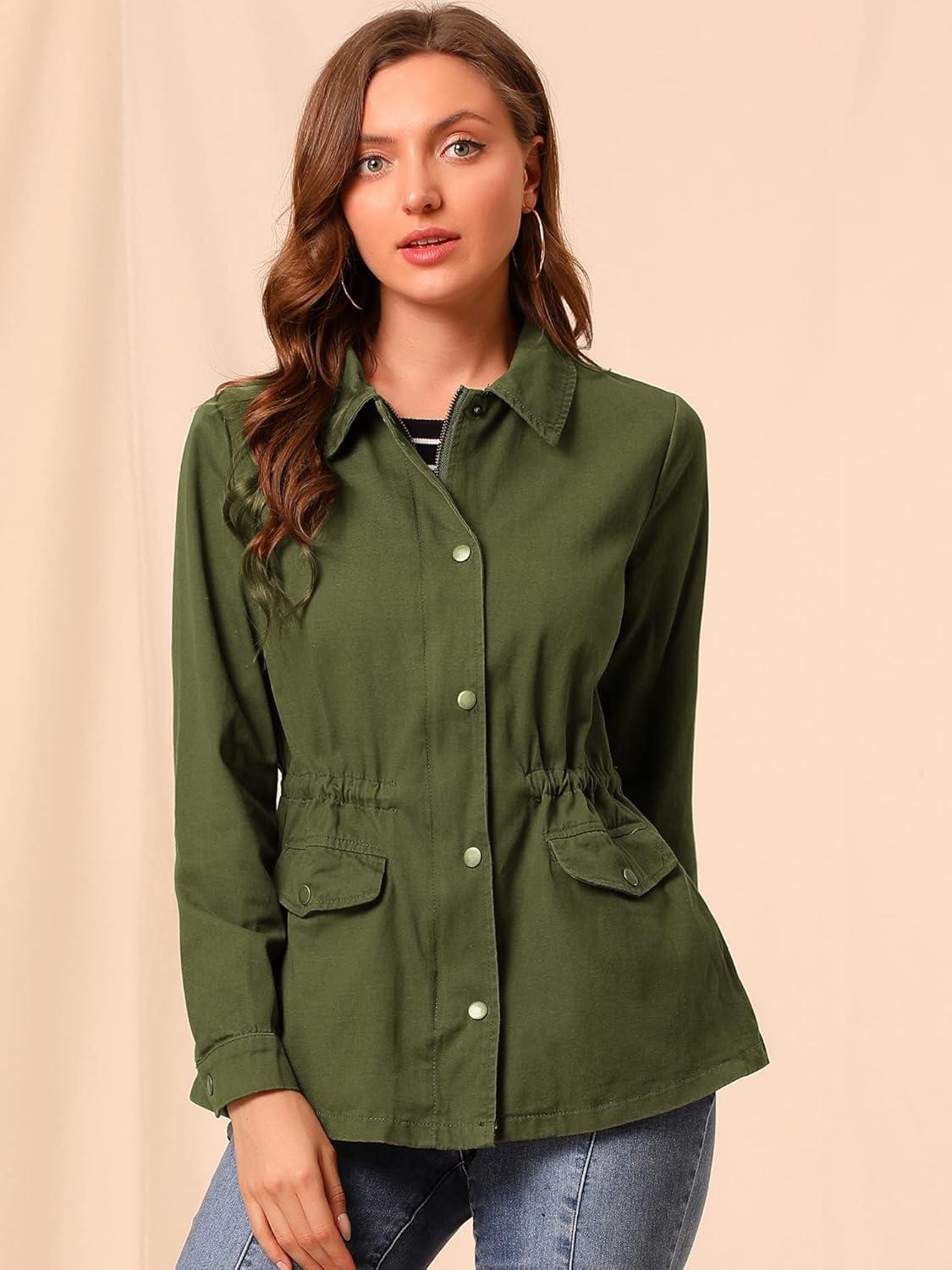 Get up to 50% off on Allegra K Women’s Utility Jacket Zip Up Drawstring Waist Snap Buttons Lightweight Anorak Jackets with Pockets(Olive Green) styles during our spring sale event.