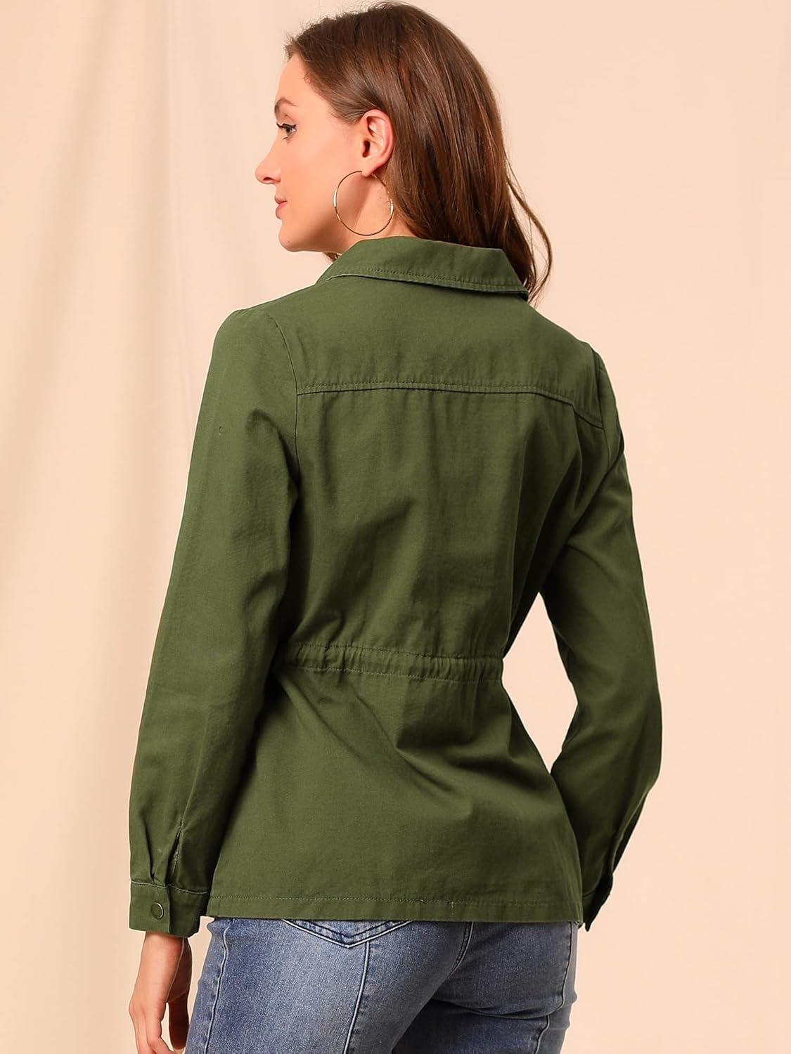imageAllegra K Womens Utility Jacket Zip Up Drawstring Waist Snap Buttons Lightweight Anorak Jackets with PocketsOlive Green