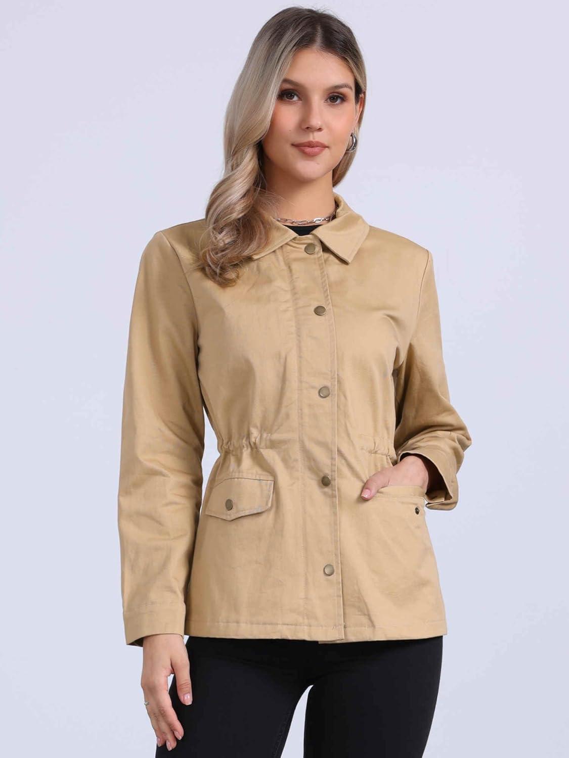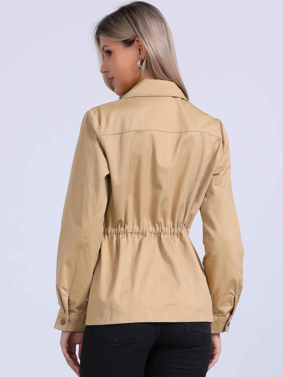 imageAllegra K Womens Utility Jacket Zip Up Drawstring Waist Snap Buttons Lightweight Anorak Jackets with PocketsTan Khaki