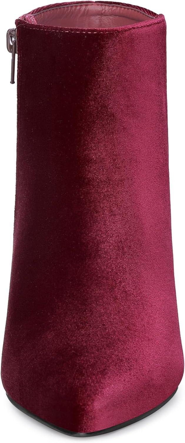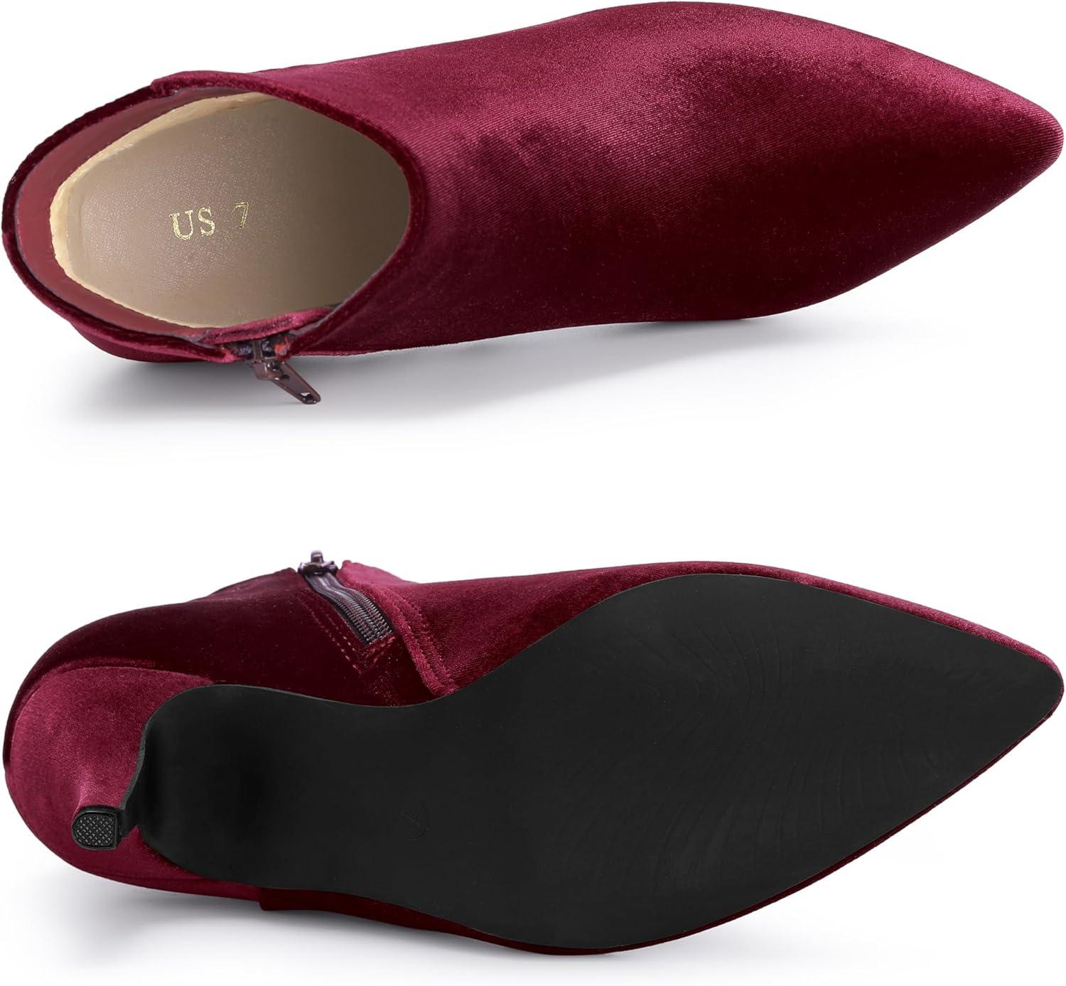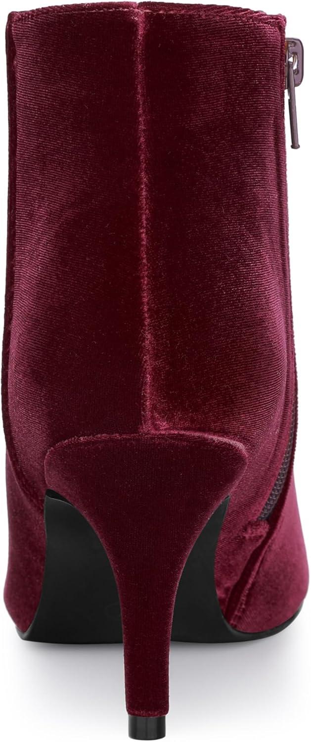 Allegra K Women's Velvet Pointy Toe Stiletto Heels Ankle Boots(Burgundy)