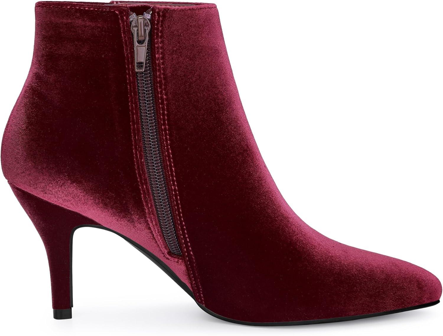 Allegra K Women’s Velvet Pointy Toe Stiletto Heels Ankle Boots(Burgundy)