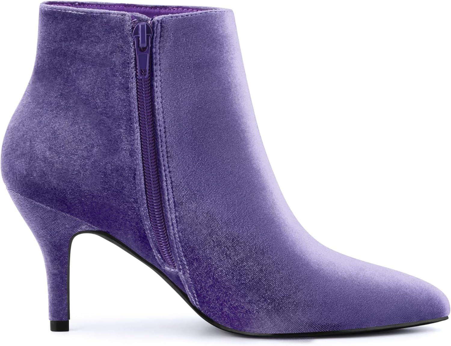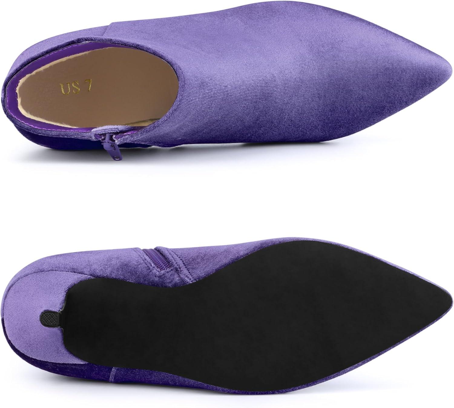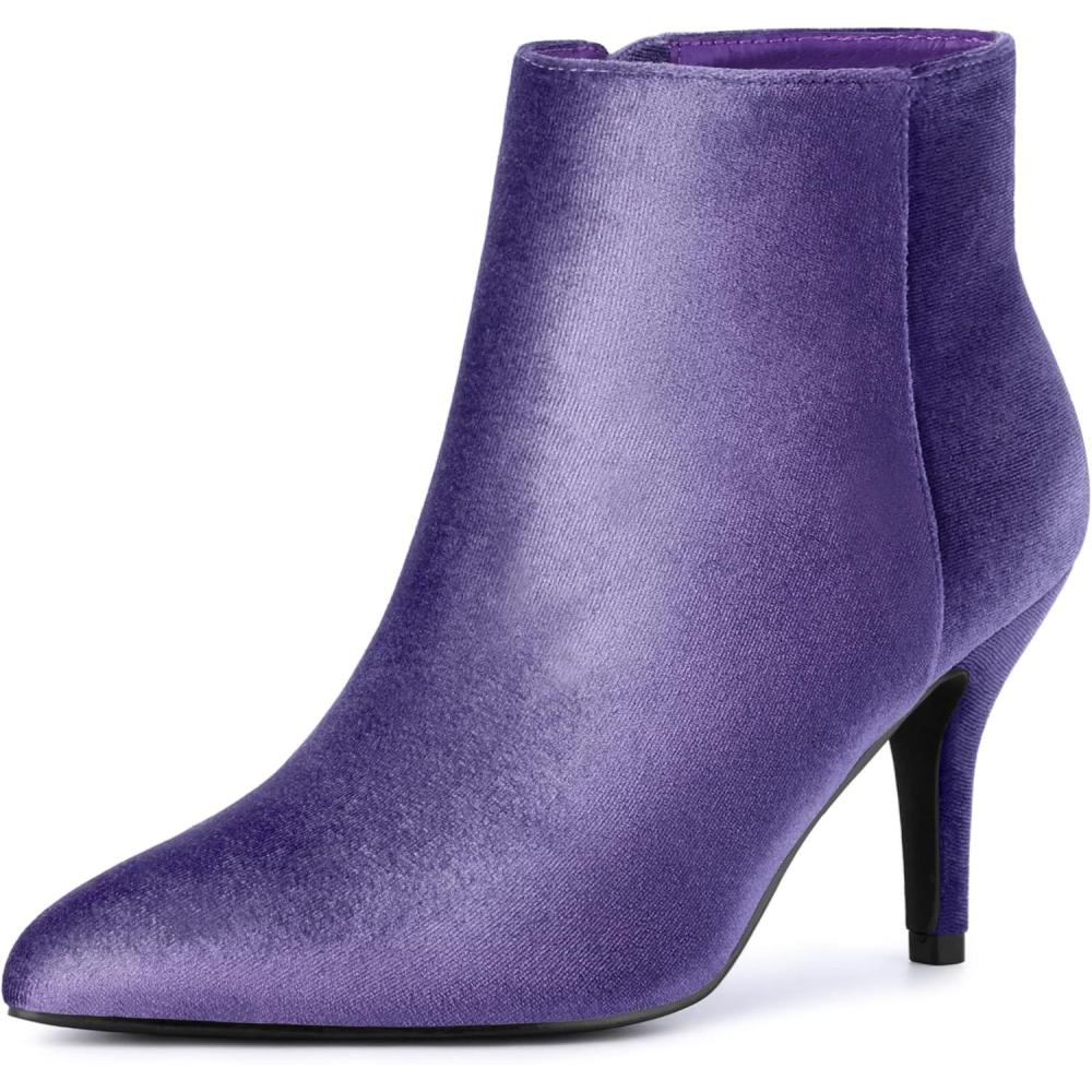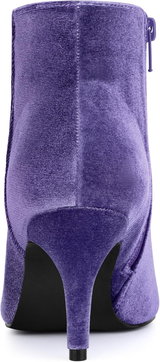 Allegra K Women's Velvet Pointy Toe Stiletto Heels Ankle Boots(Purple)