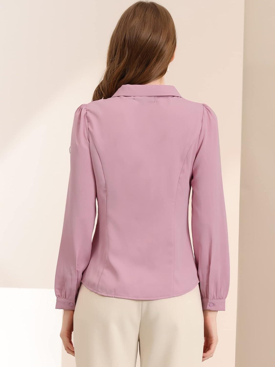 Allegra K Women’s Vintage Bow Tie Neck Peter Pan Collar Blouse Preppy Chiffon Button Up Shirt(Pink)