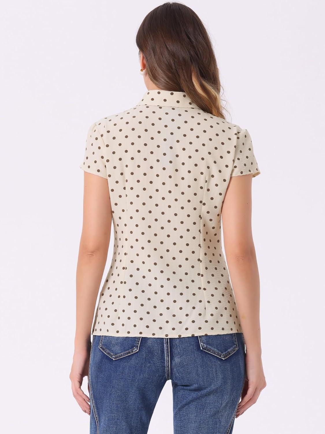 Allegra K Women's Vintage Polka Dots Shirt Retro Short Sleeve Button Up Tops(Dark Beige)