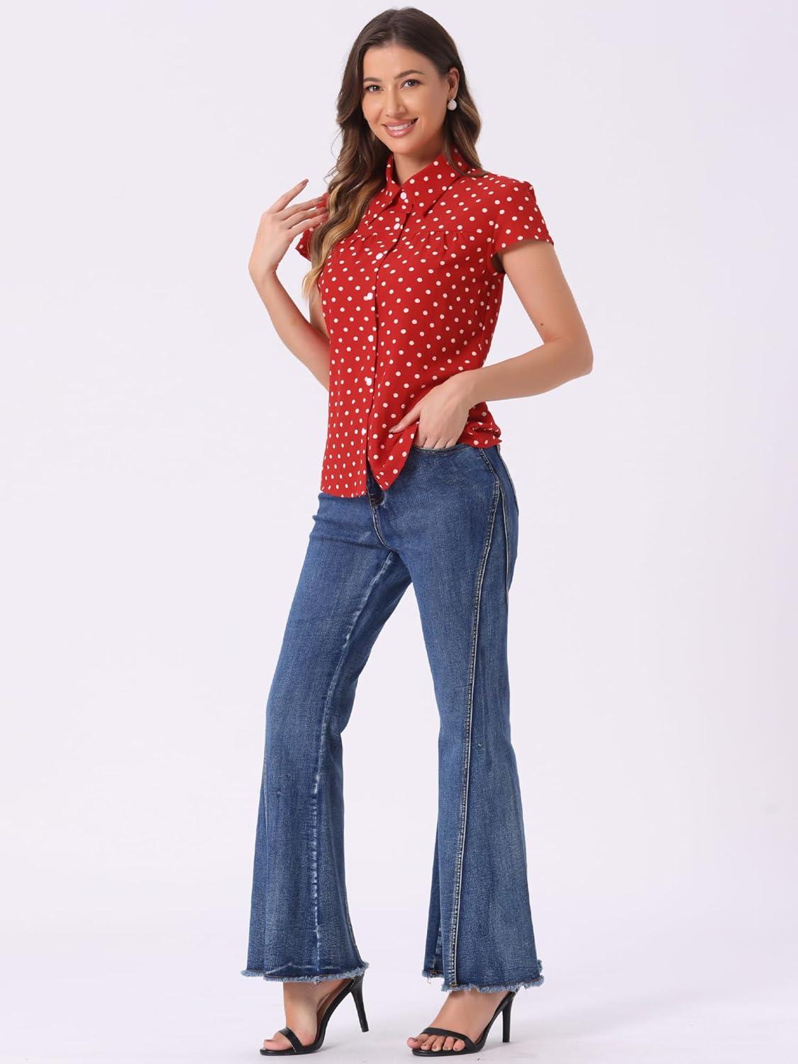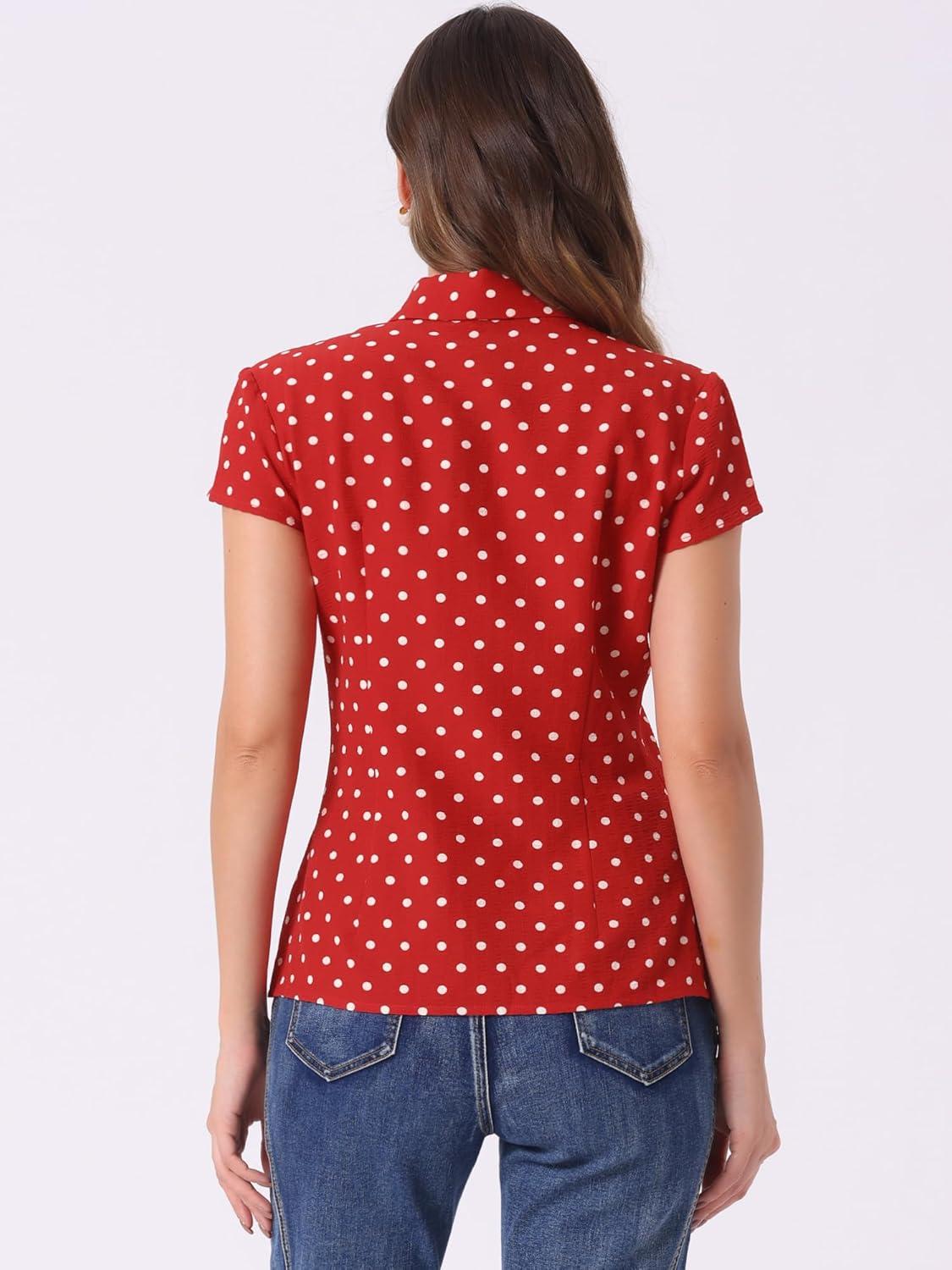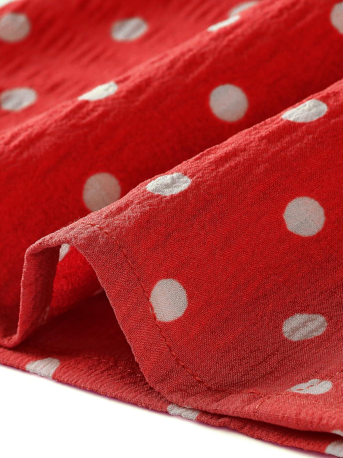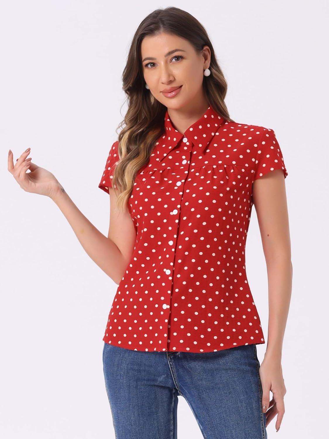 Allegra K Women’s Vintage Polka Dots Shirt Retro Short Sleeve Button Up Tops(Red)
