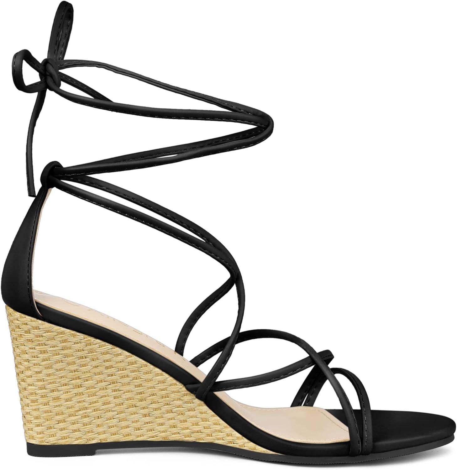 Allegra K Women’s Wedge Heels Lace Up Strappy Low Wedges Sandals(Black)