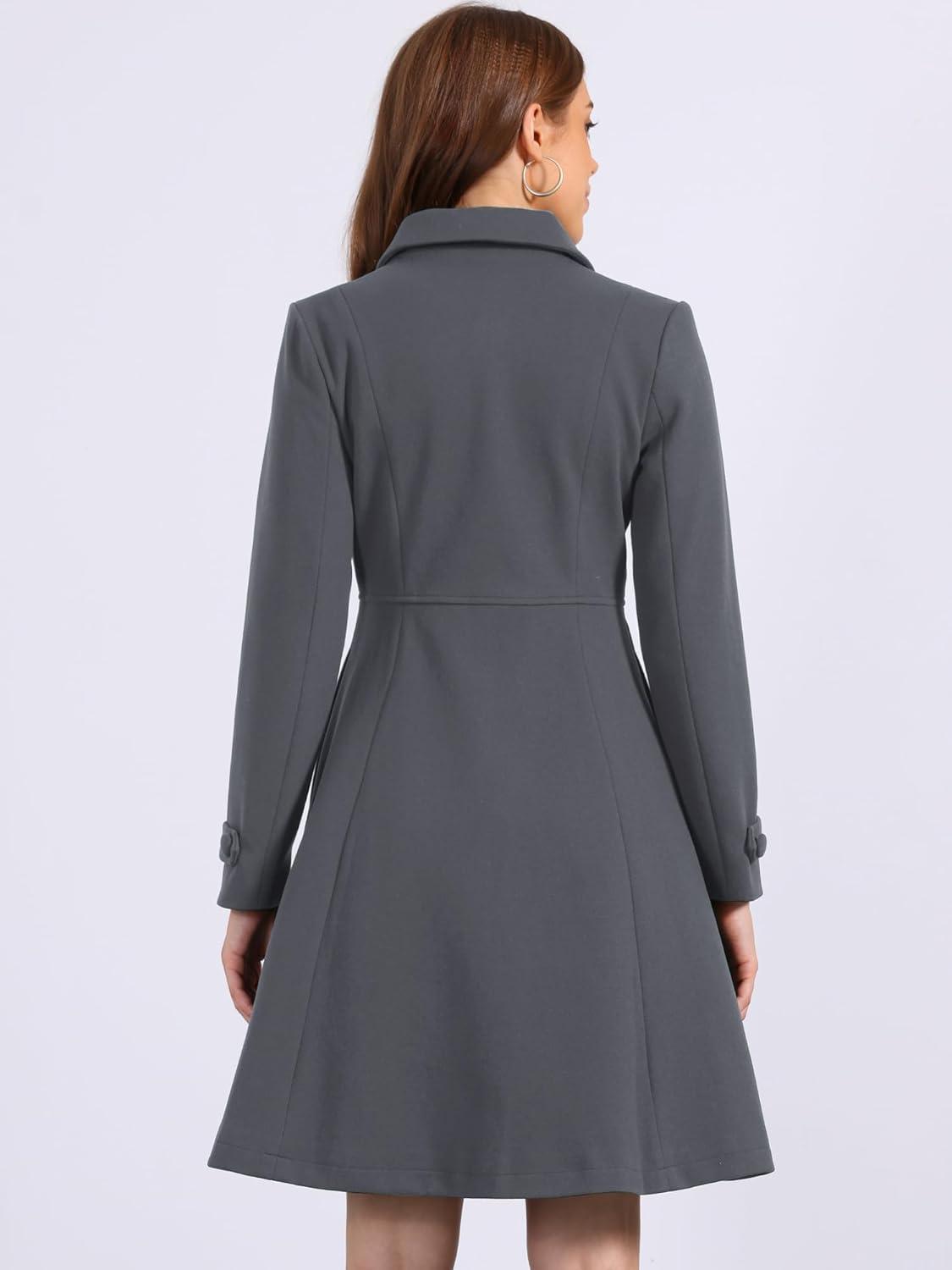 Allegra K Women’s Winter Coat Overcoat Lapel Collar Long Swing A Line Double Breasted Pea Coat(Dark Grey)