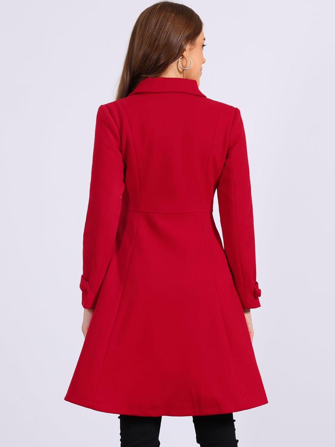 imageAllegra K Womens Winter Coat Overcoat Lapel Collar Long Swing A Line Double Breasted Pea CoatRed