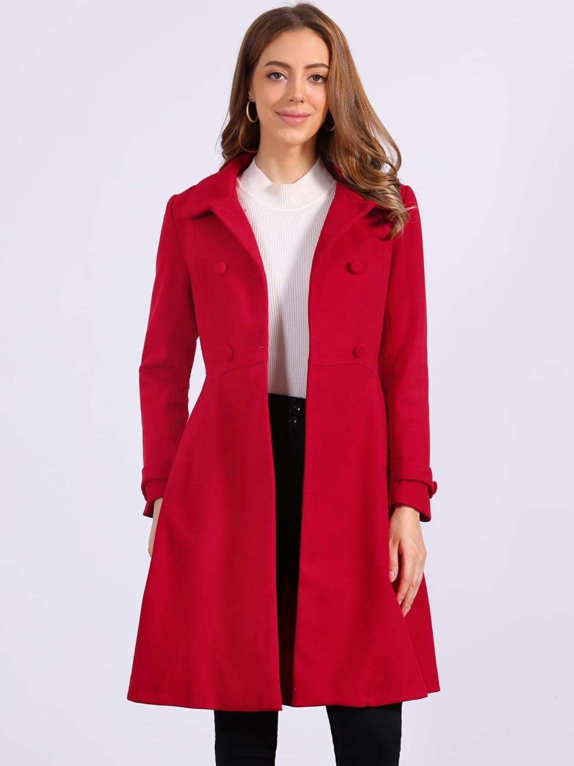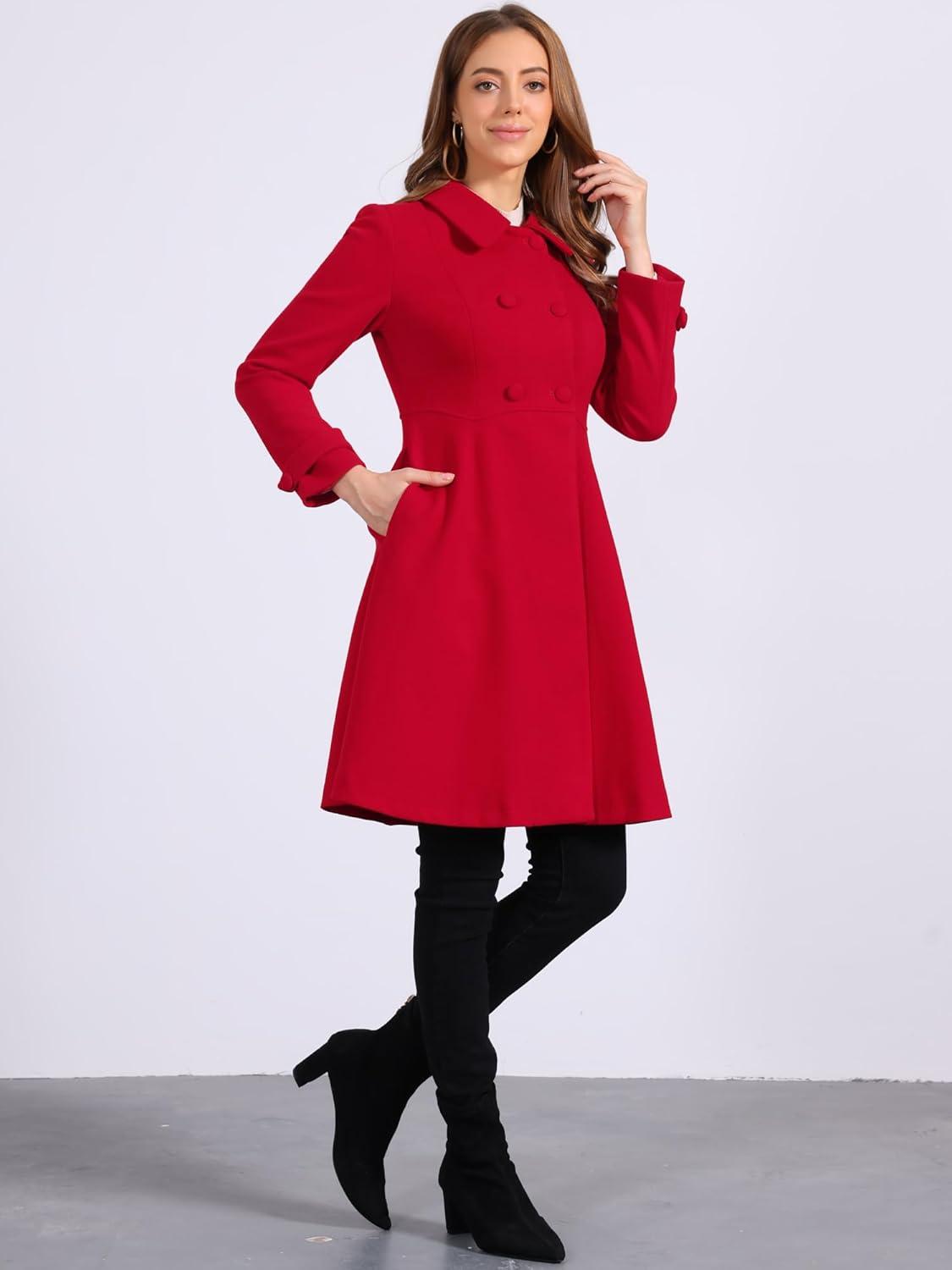 Allegra K Women’s Winter Coat Overcoat Lapel Collar Long Swing A Line Double Breasted Pea Coat(Red)