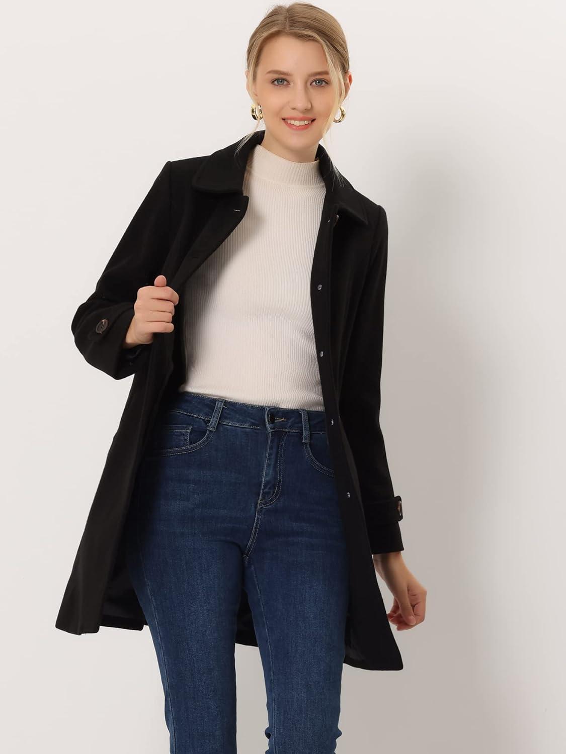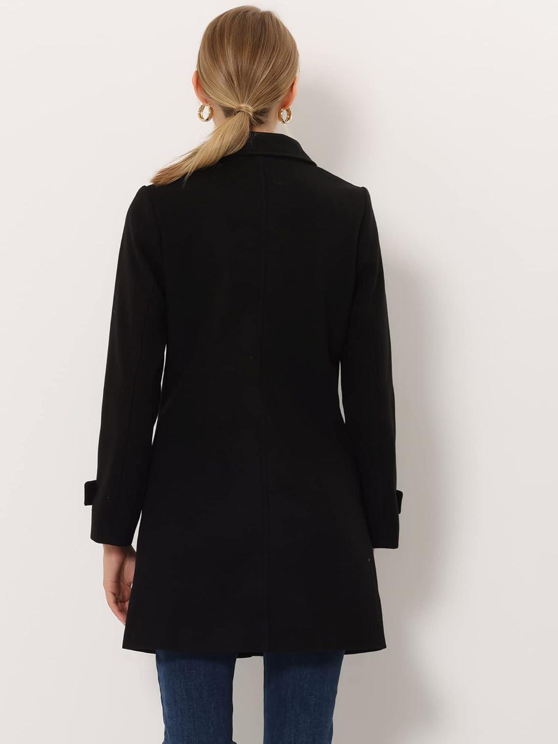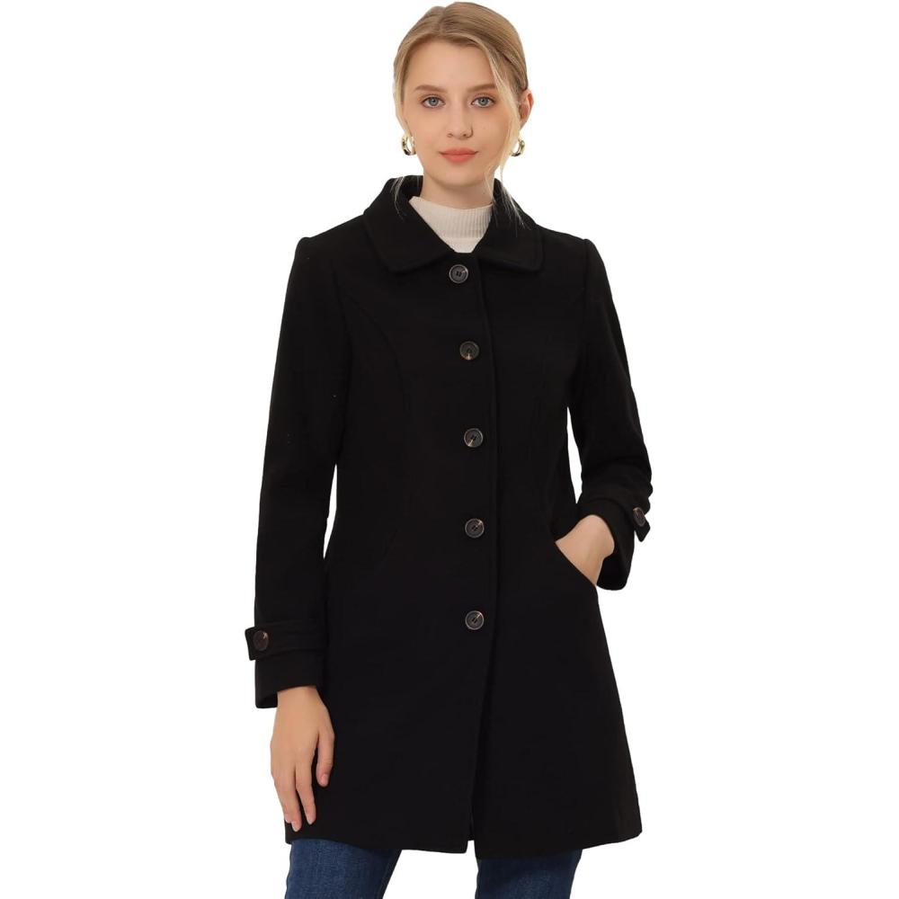 Allegra K Women’s Winter Outerwear Overcoat Peter Pan Collar Mid-thigh A-line Single Breasted Pea Coat(Black)