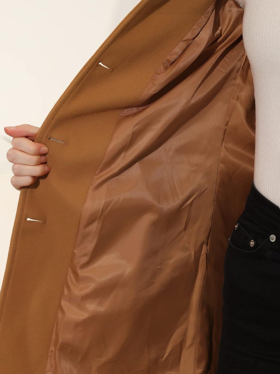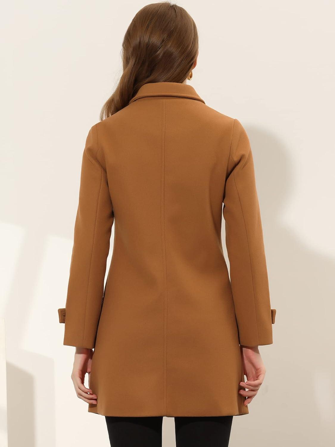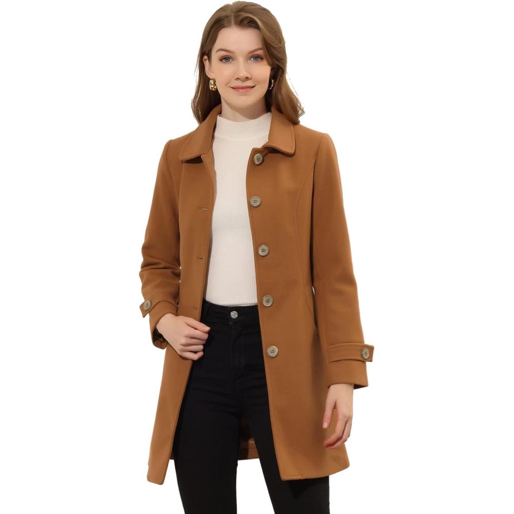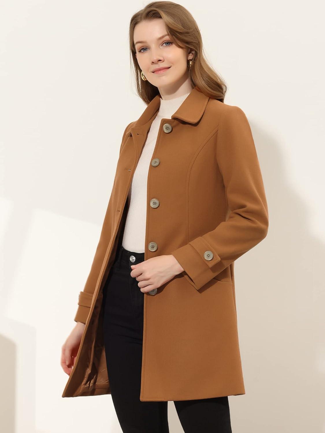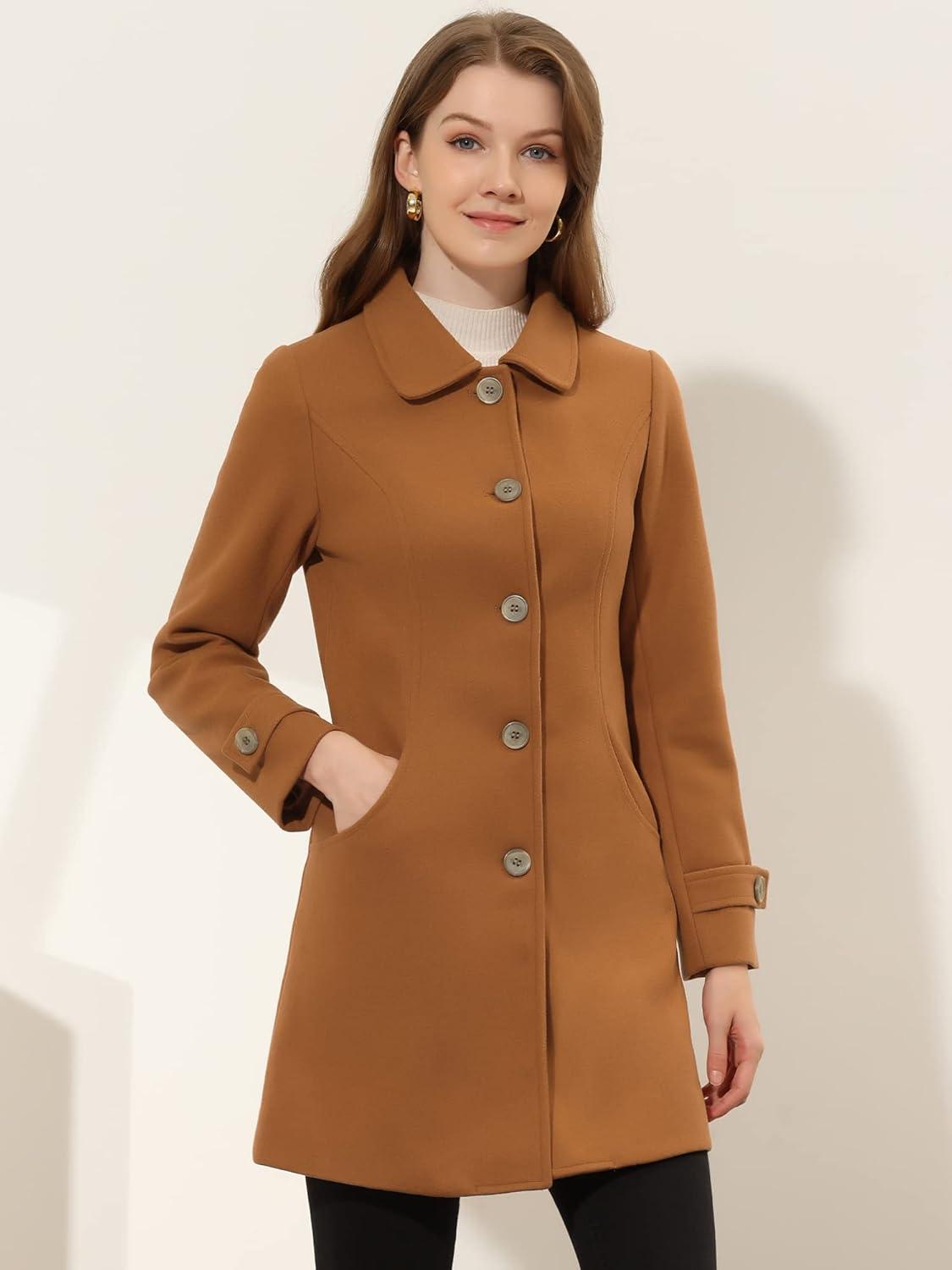 Allegra K Women’s Winter Outerwear Overcoat Peter Pan Collar Mid-thigh A-line Single Breasted Pea Coat(Brown)