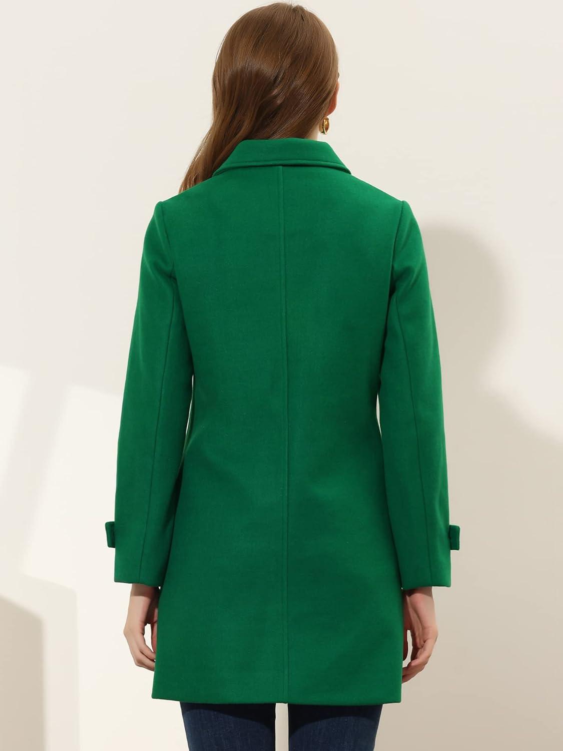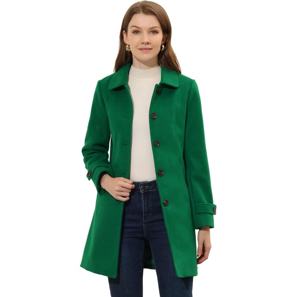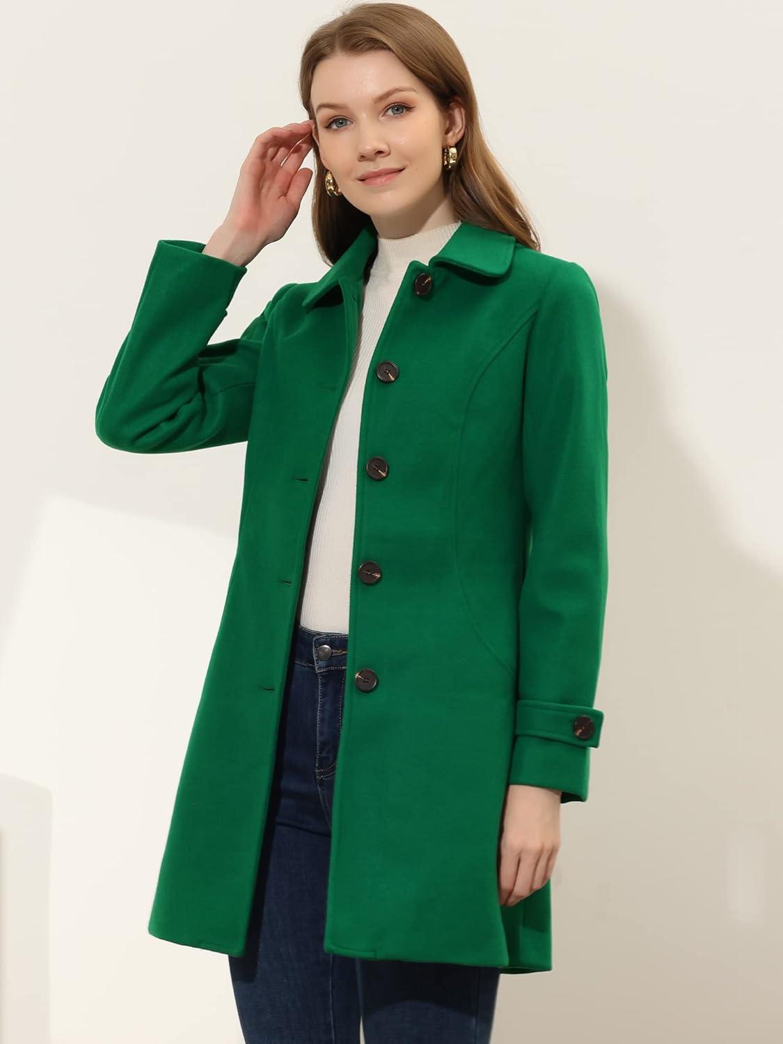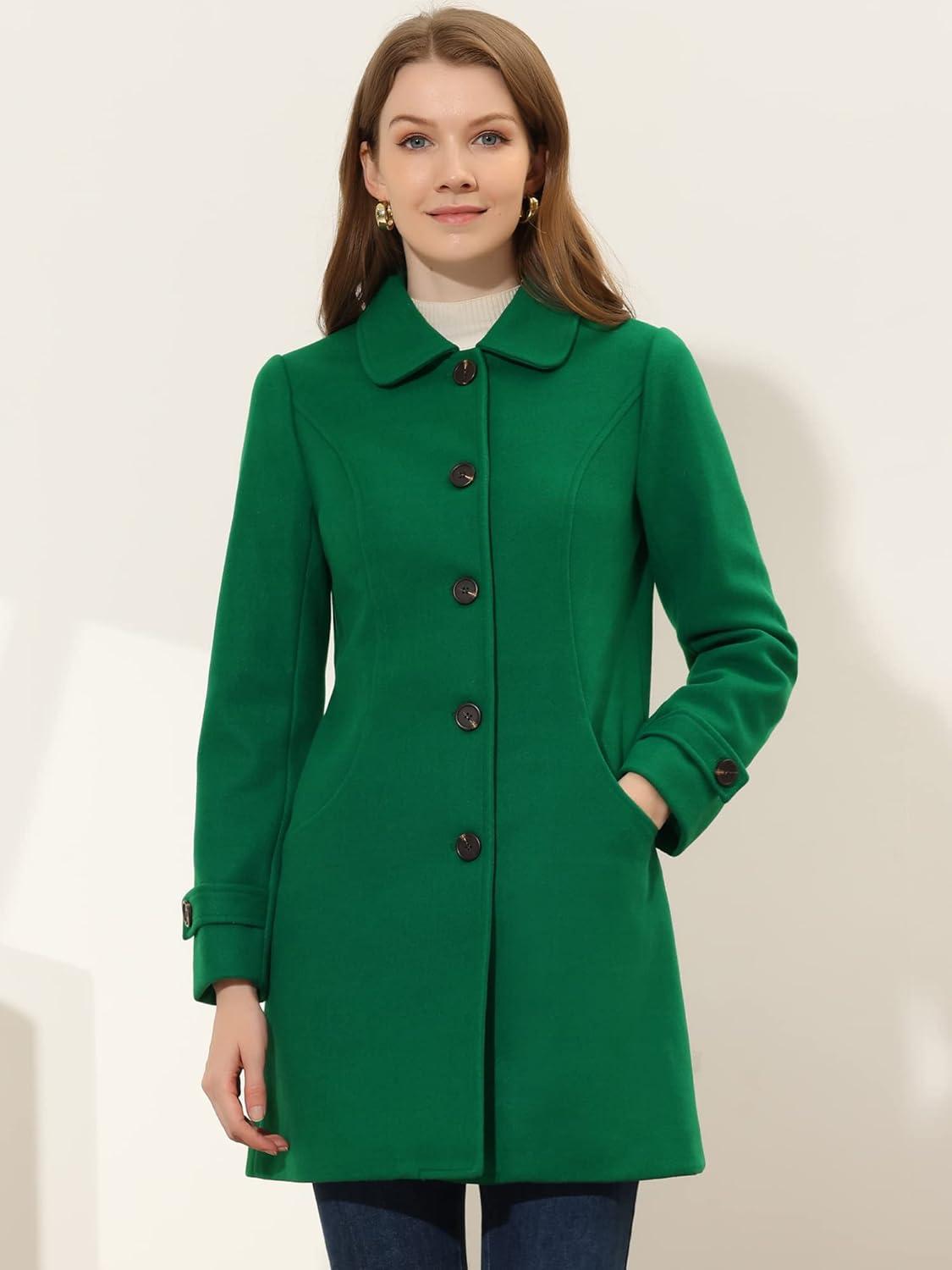 Allegra K Women’s Winter Outerwear Overcoat Peter Pan Collar Mid-thigh A-line Single Breasted Pea Coat(Green)