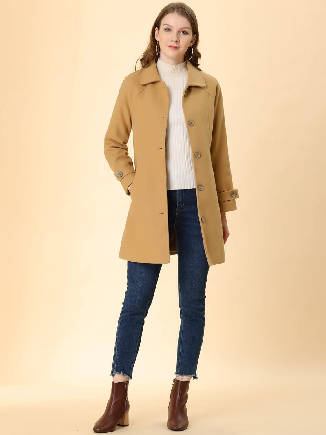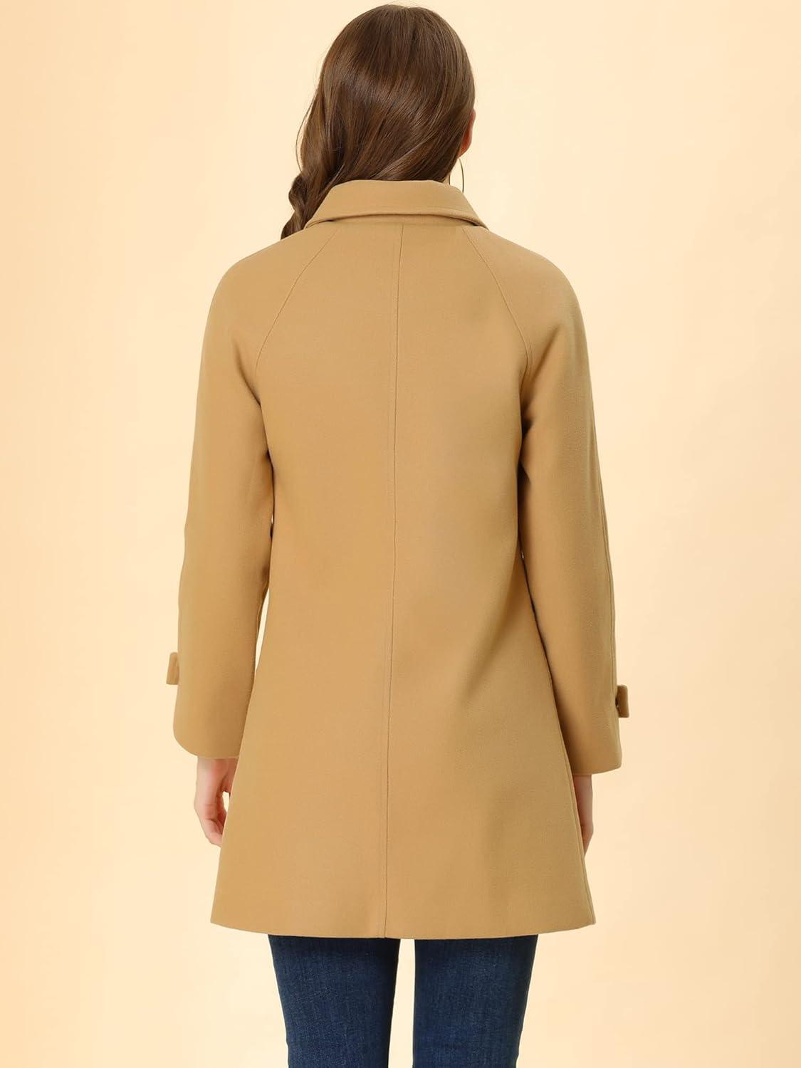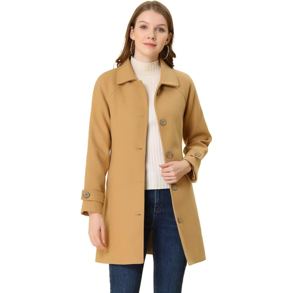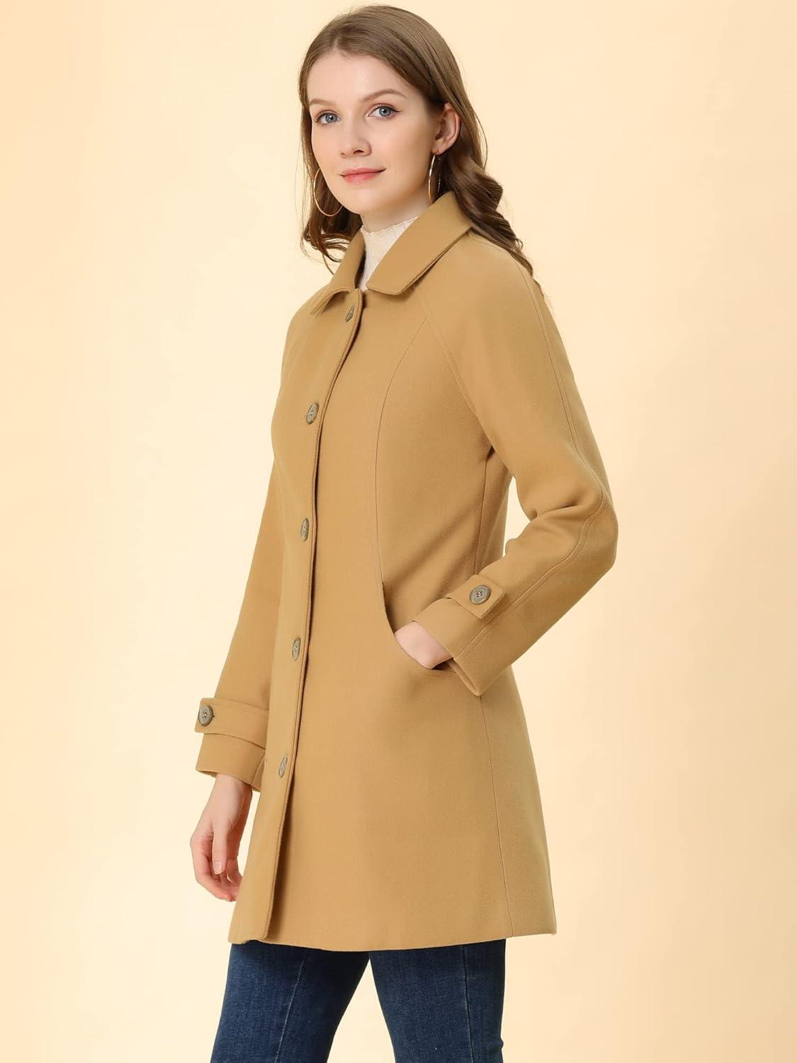 Allegra K Women’s Winter Outerwear Overcoat Peter Pan Collar Mid-thigh A-line Single Breasted Pea Coat(Khaki)