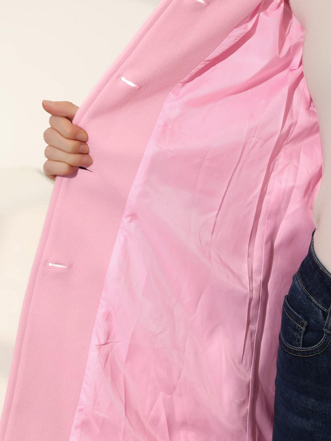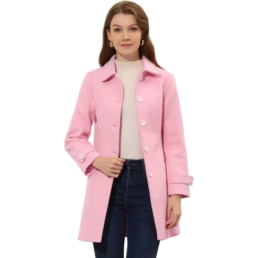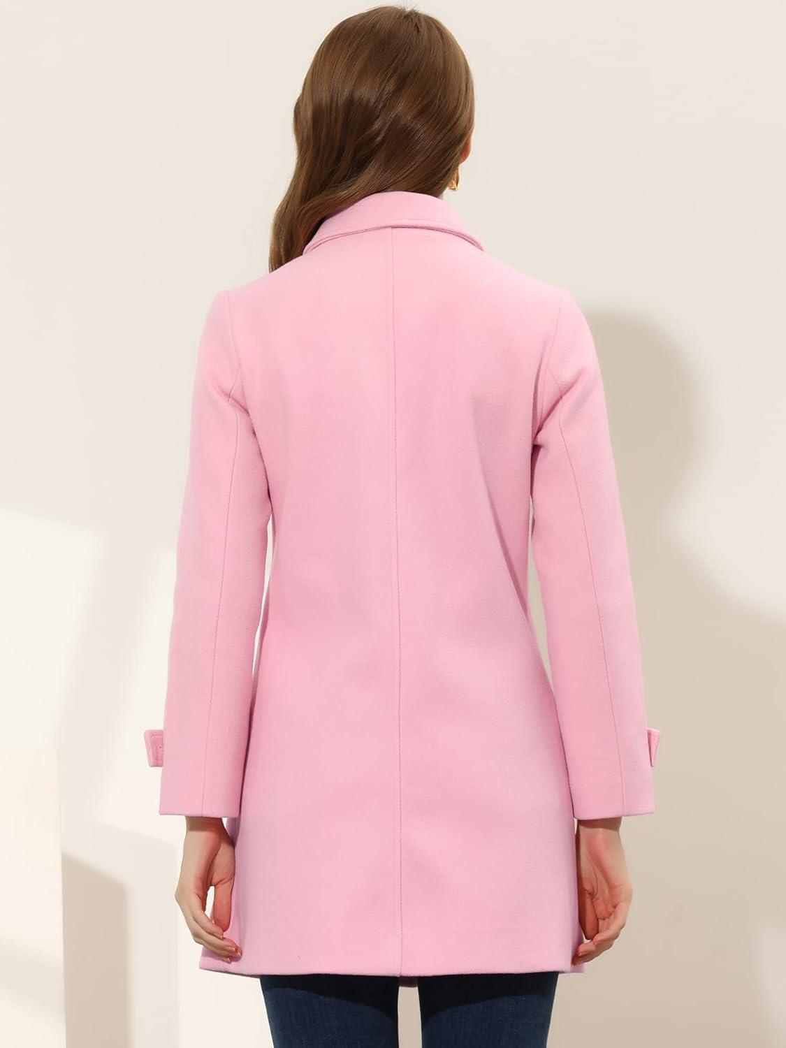 Allegra K Women’s Winter Outerwear Overcoat Peter Pan Collar Mid-thigh A-line Single Breasted Pea Coat(Pink)