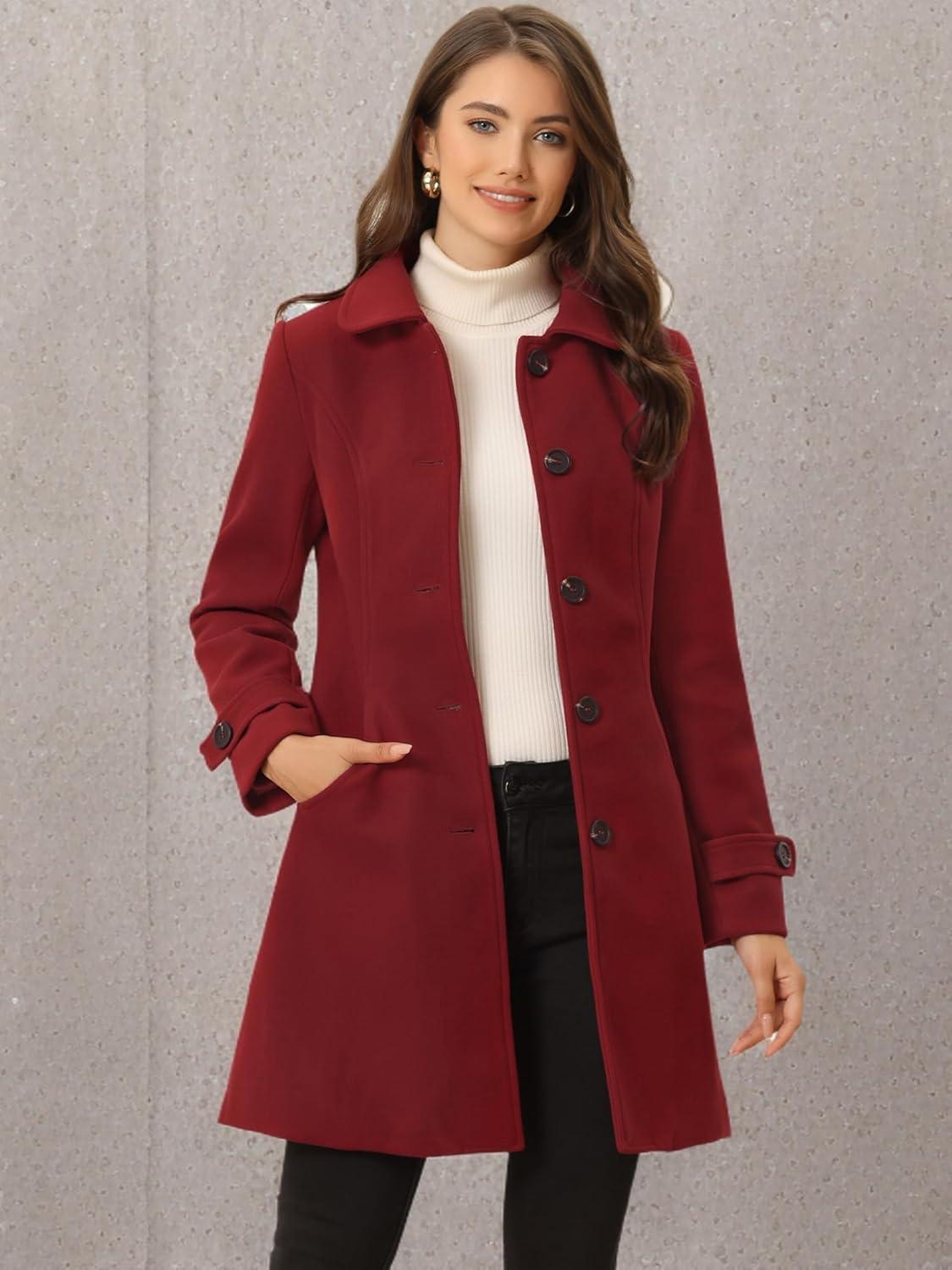Don’t miss out on our limited-time offer: buy Allegra K Women’s Winter Outerwear Overcoat Peter Pan Collar Mid-thigh A-line Single Breasted Pea Coat(Red), get a free {accessory}!