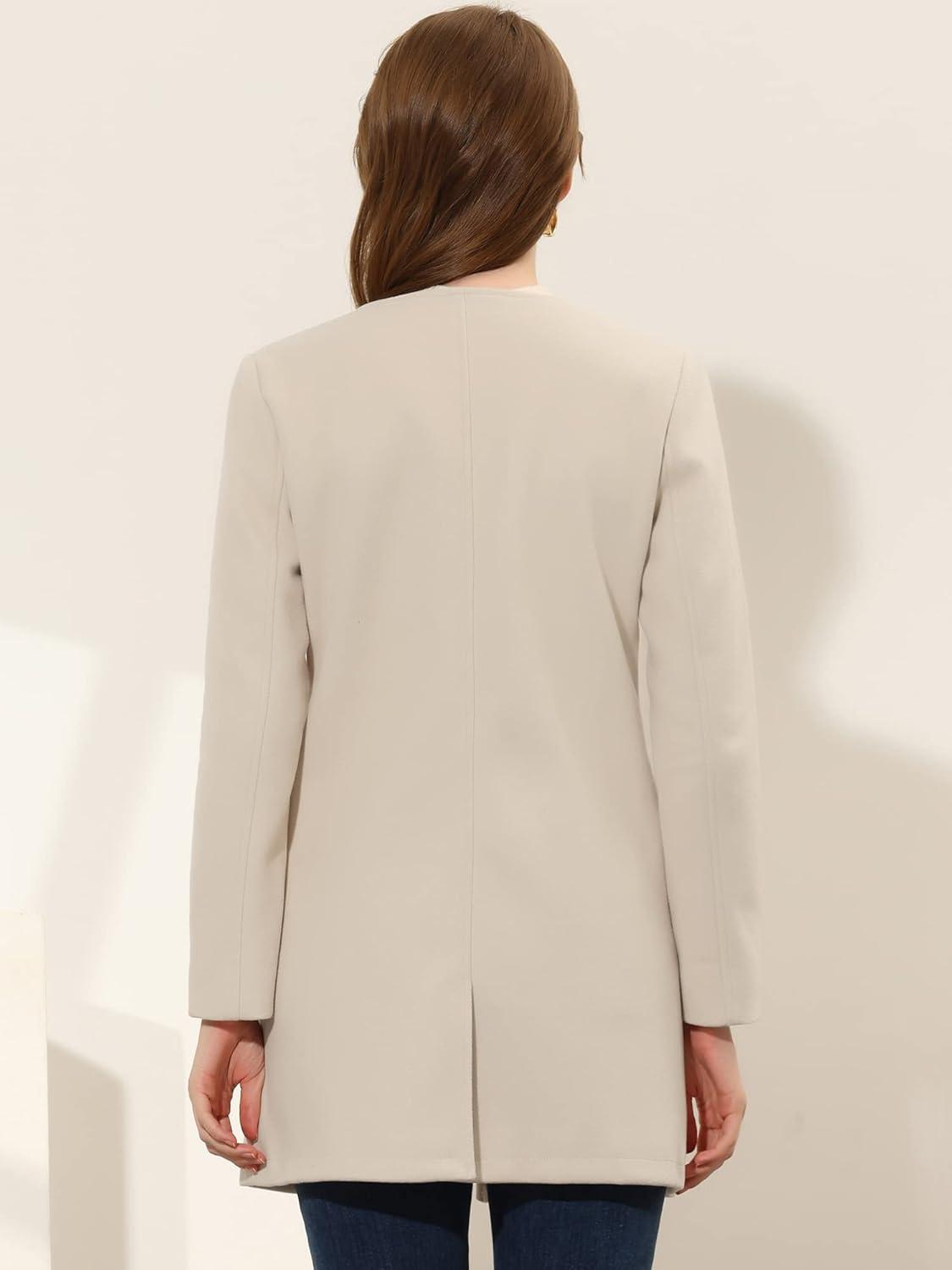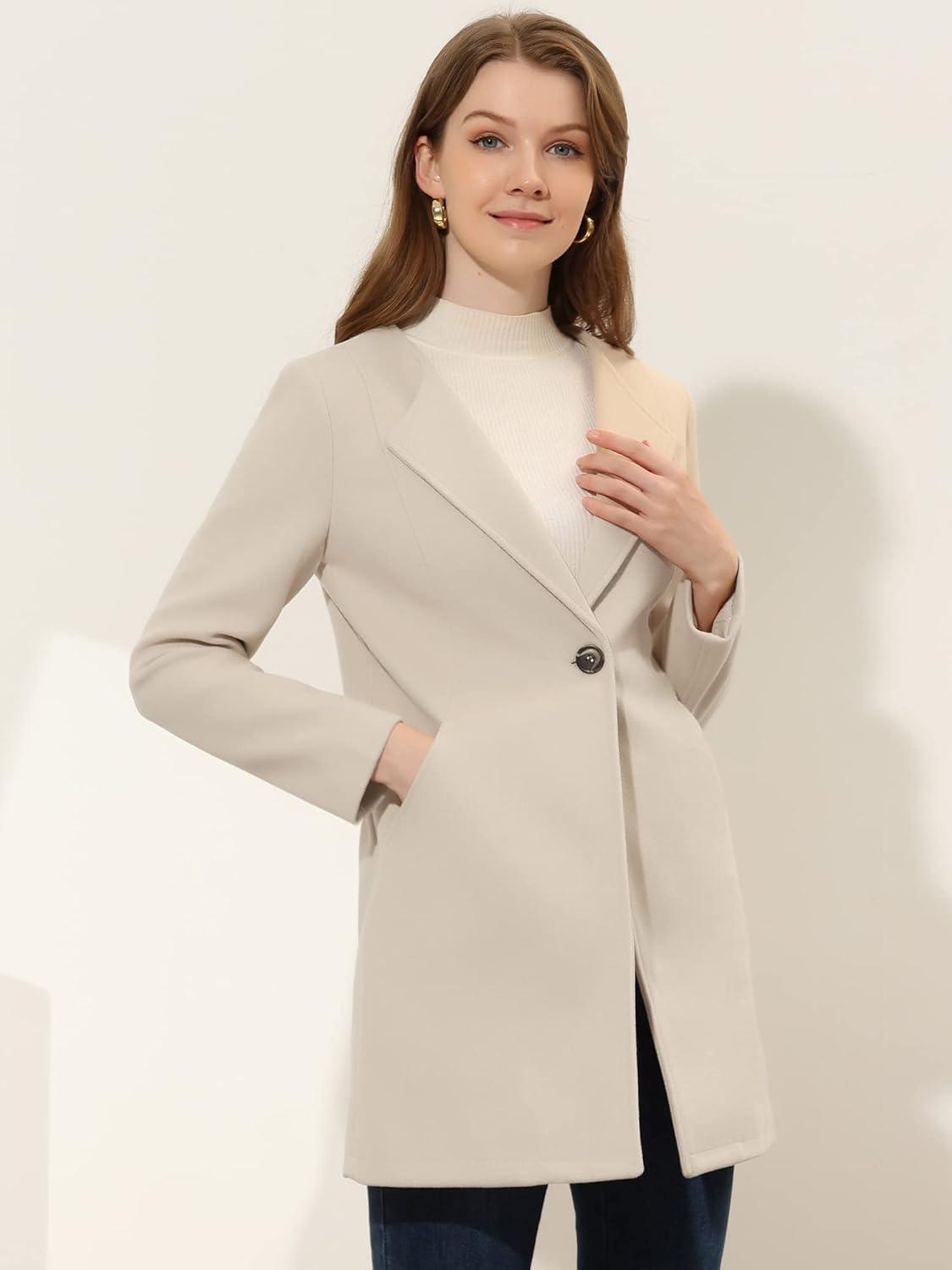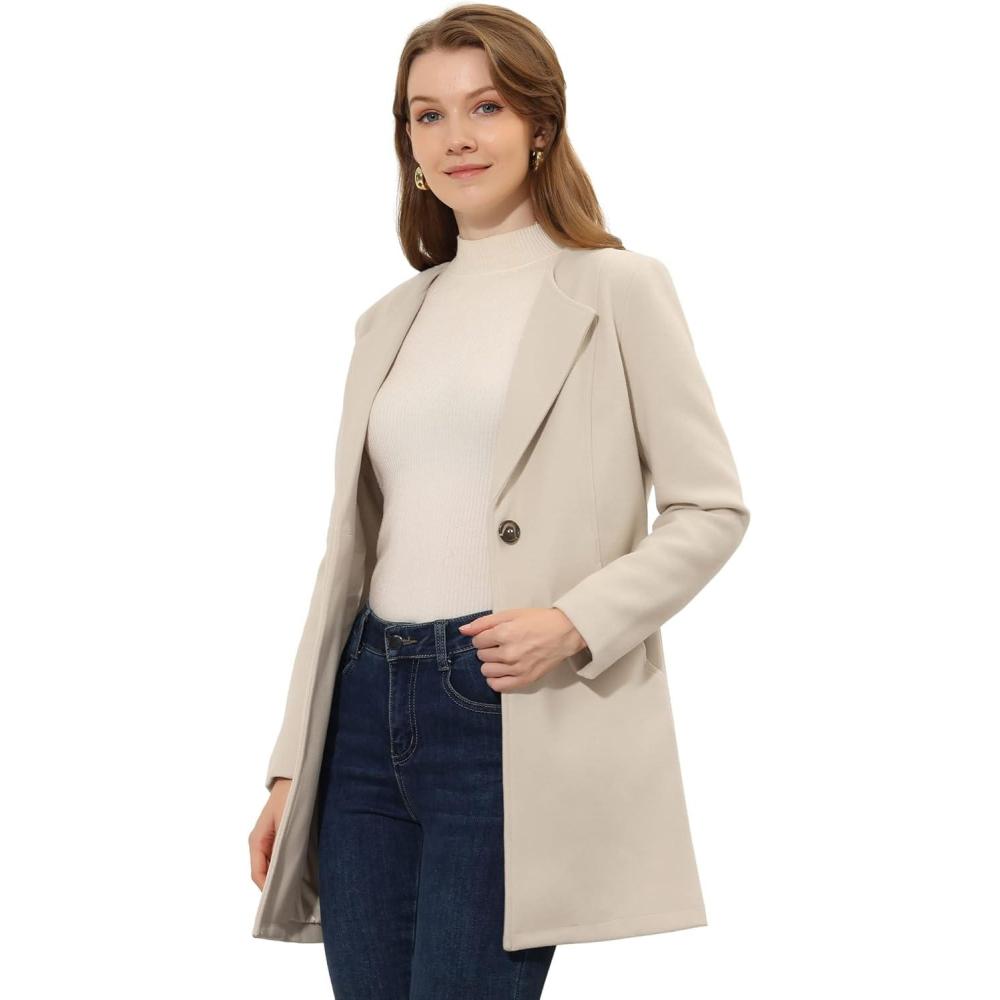 imageAllegra K Womens Winter Overcoat Lapel Collar Single Breasted Outerwear Long Pea CoatBeige White