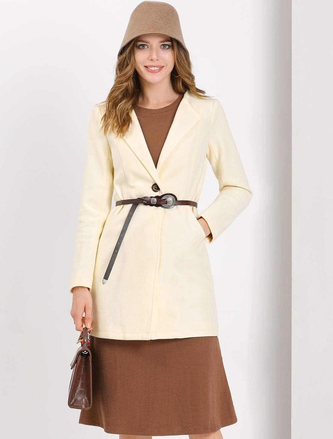 Allegra K Women's Winter Overcoat Lapel Collar Single Breasted Outerwear Long Pea Coat(Beige)