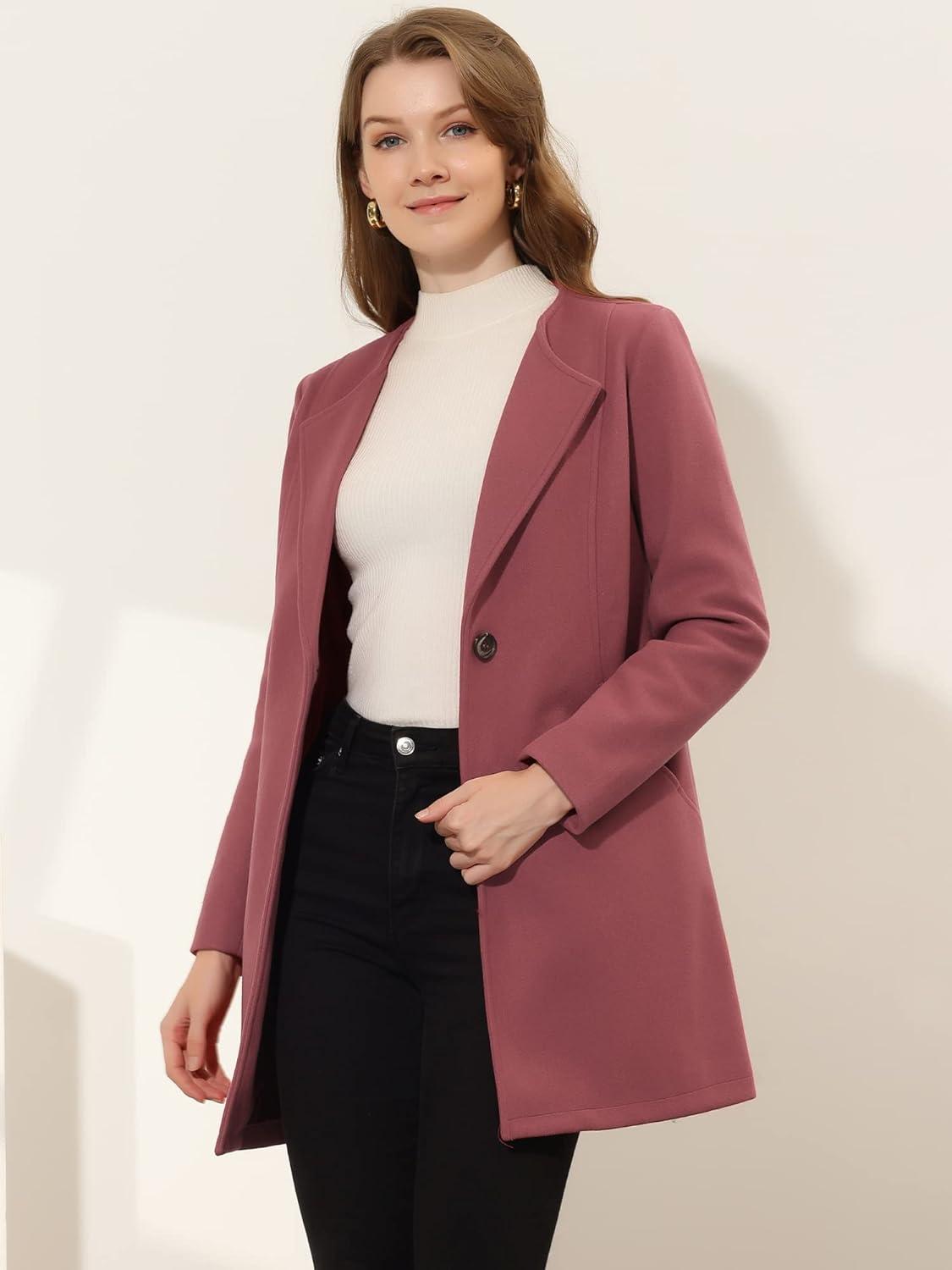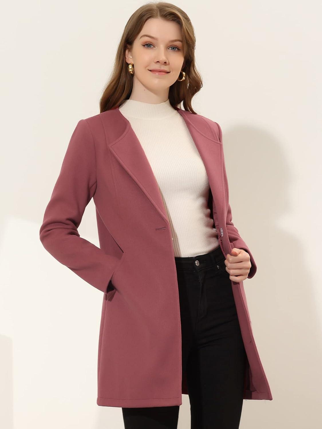 Allegra K Women’s Winter Overcoat Lapel Collar Single Breasted Outerwear Long Pea Coat(Dusty Pink)