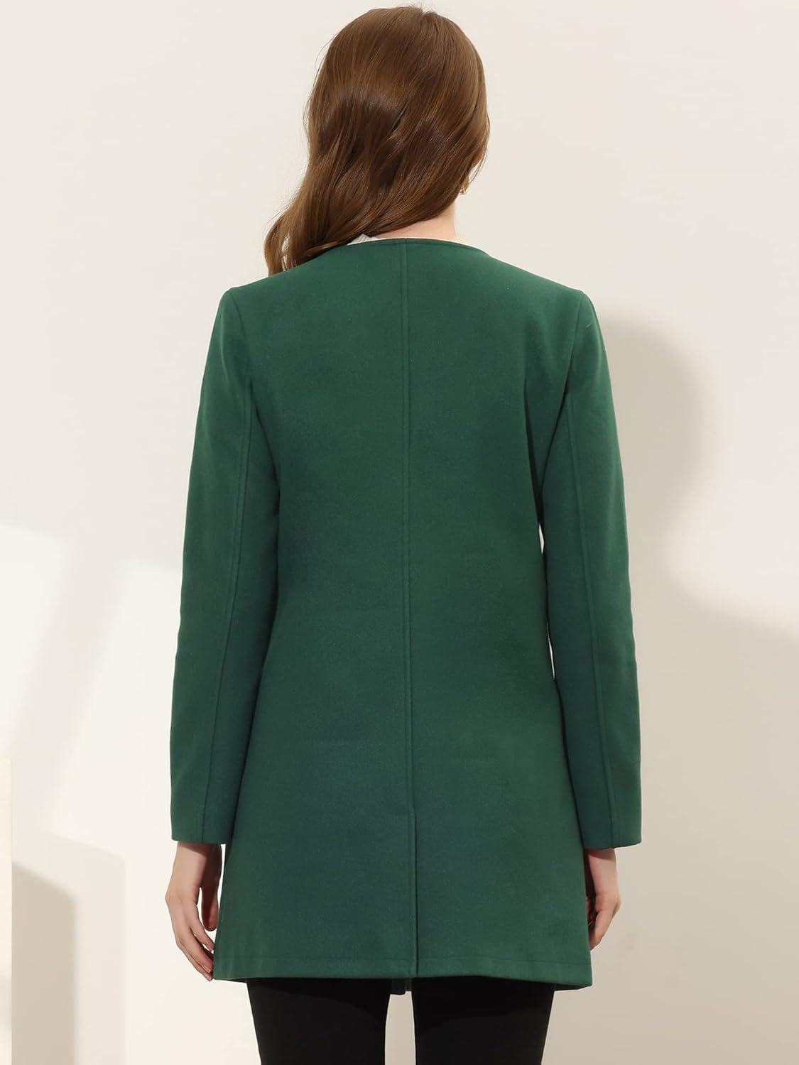 Allegra K Women’s Winter Overcoat Lapel Collar Single Breasted Outerwear Long Pea Coat(Green)
