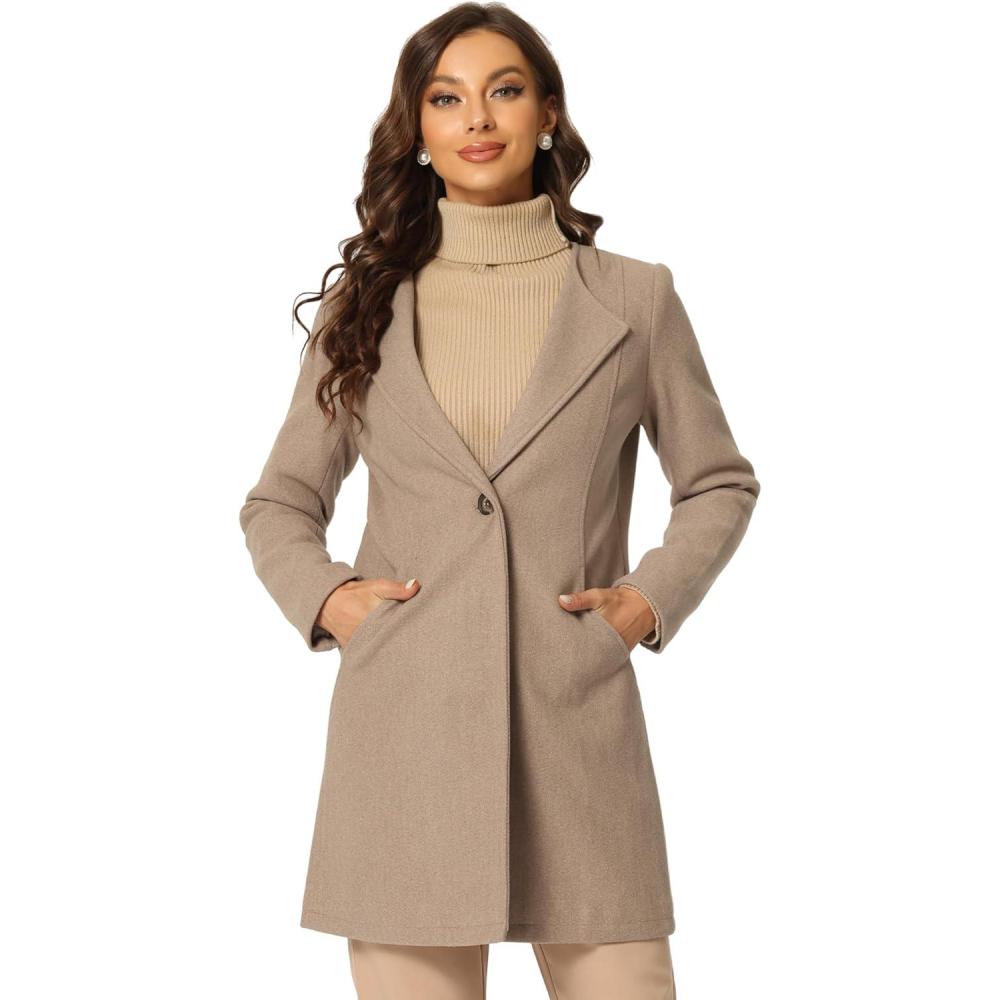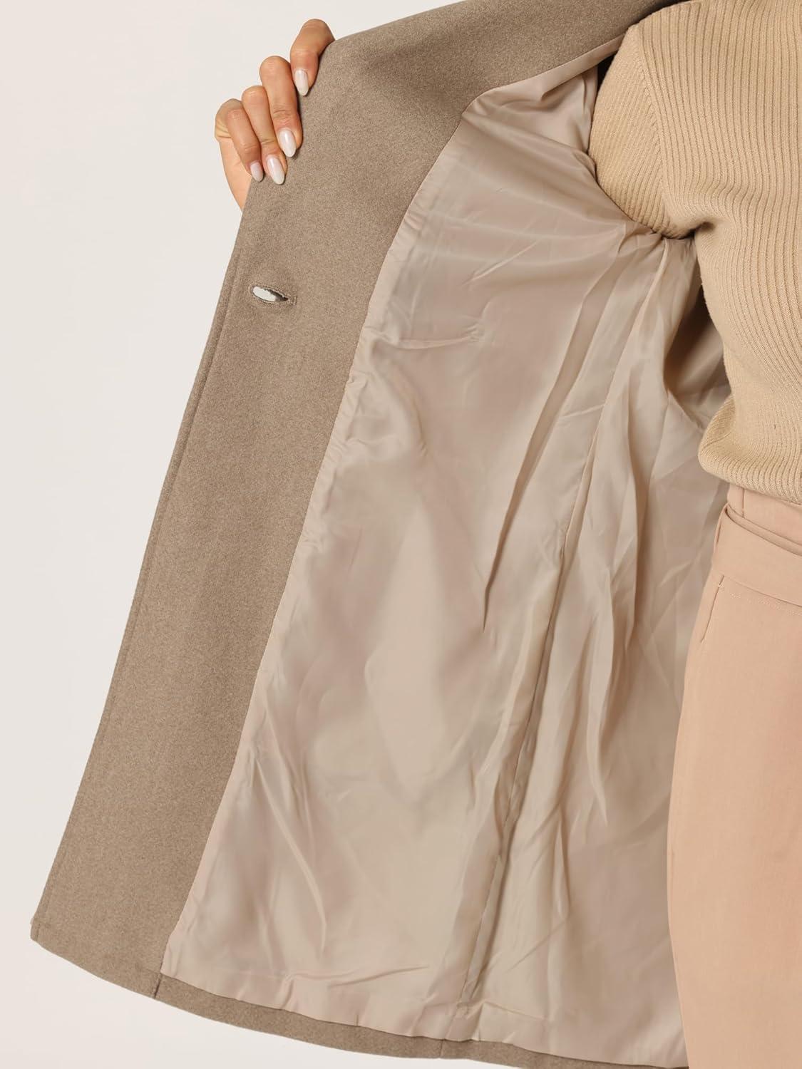 Allegra K Women’s Winter Overcoat Lapel Collar Single Breasted Outerwear Long Pea Coat(Khaki)
