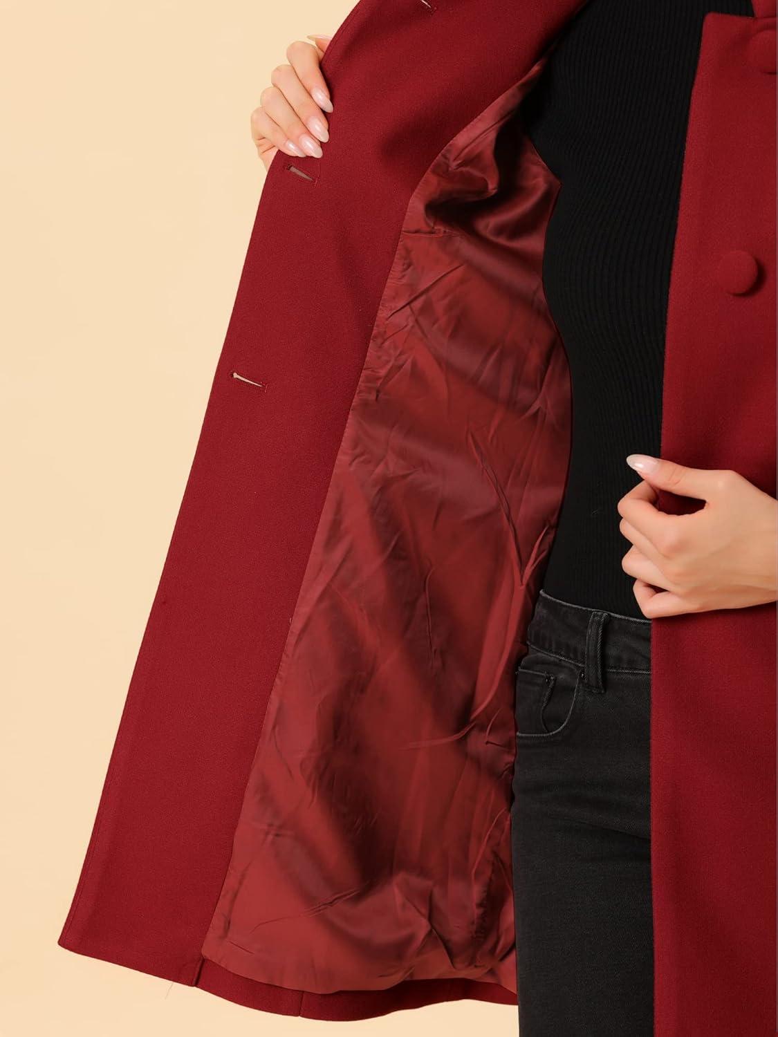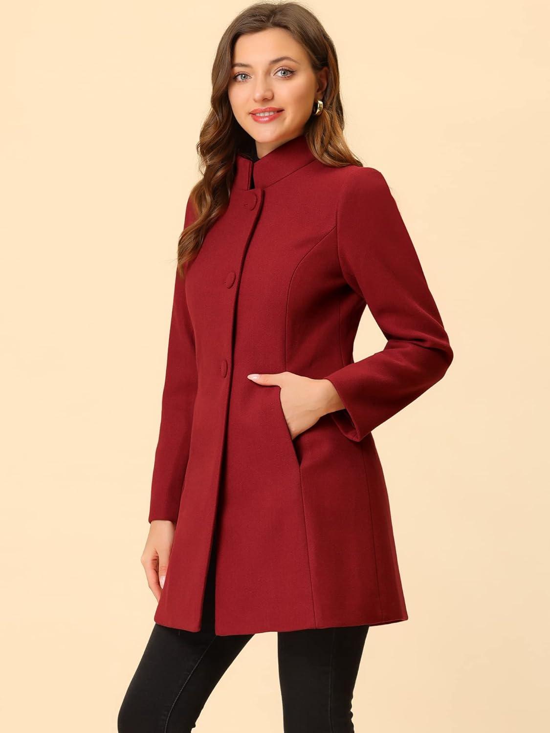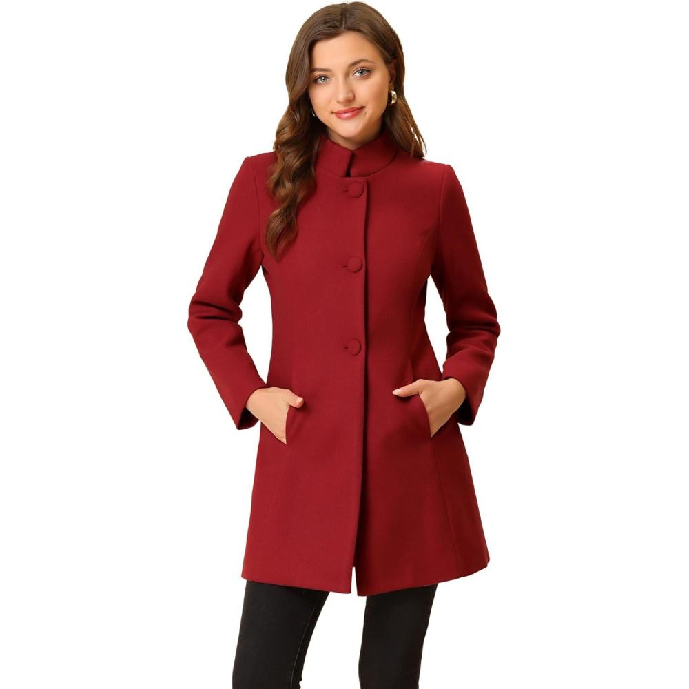 Allegra K Women’s Winter Overcoat Mid-Long Stand Collar Single Breasted Coat Outerwear(Red)