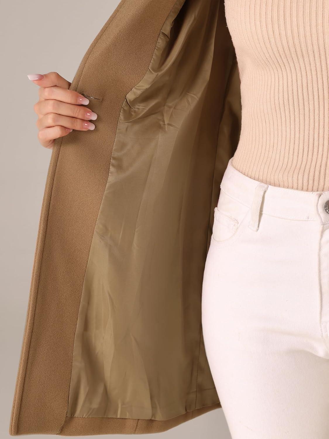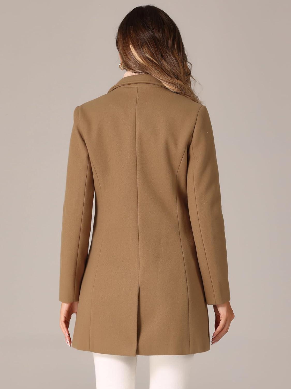 Allegra K Women's Winter Overcoat Notched Lapel One Buttoned Mid-Length Long Coat(Camel)