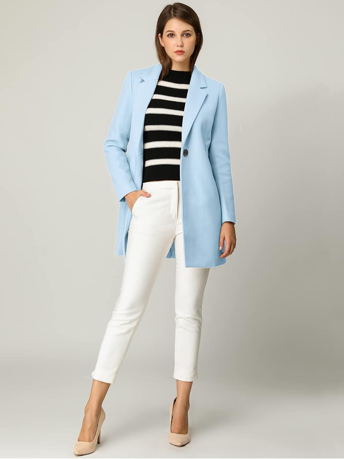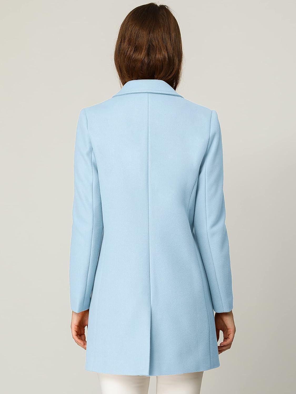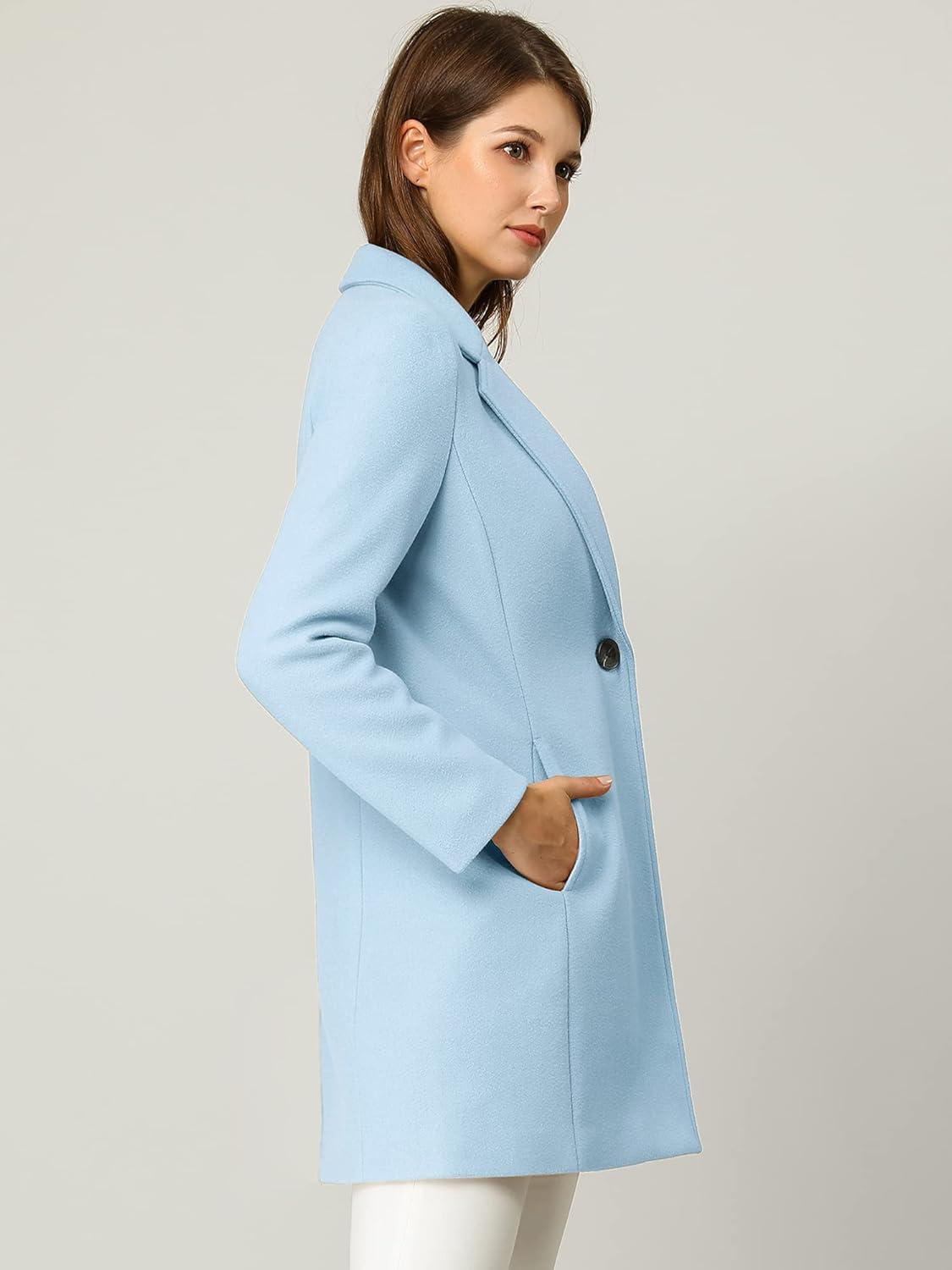 Allegra K Women's Winter Overcoat Notched Lapel One Buttoned Mid-Length Long Coat(Light Blue)